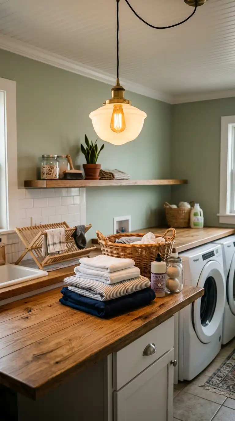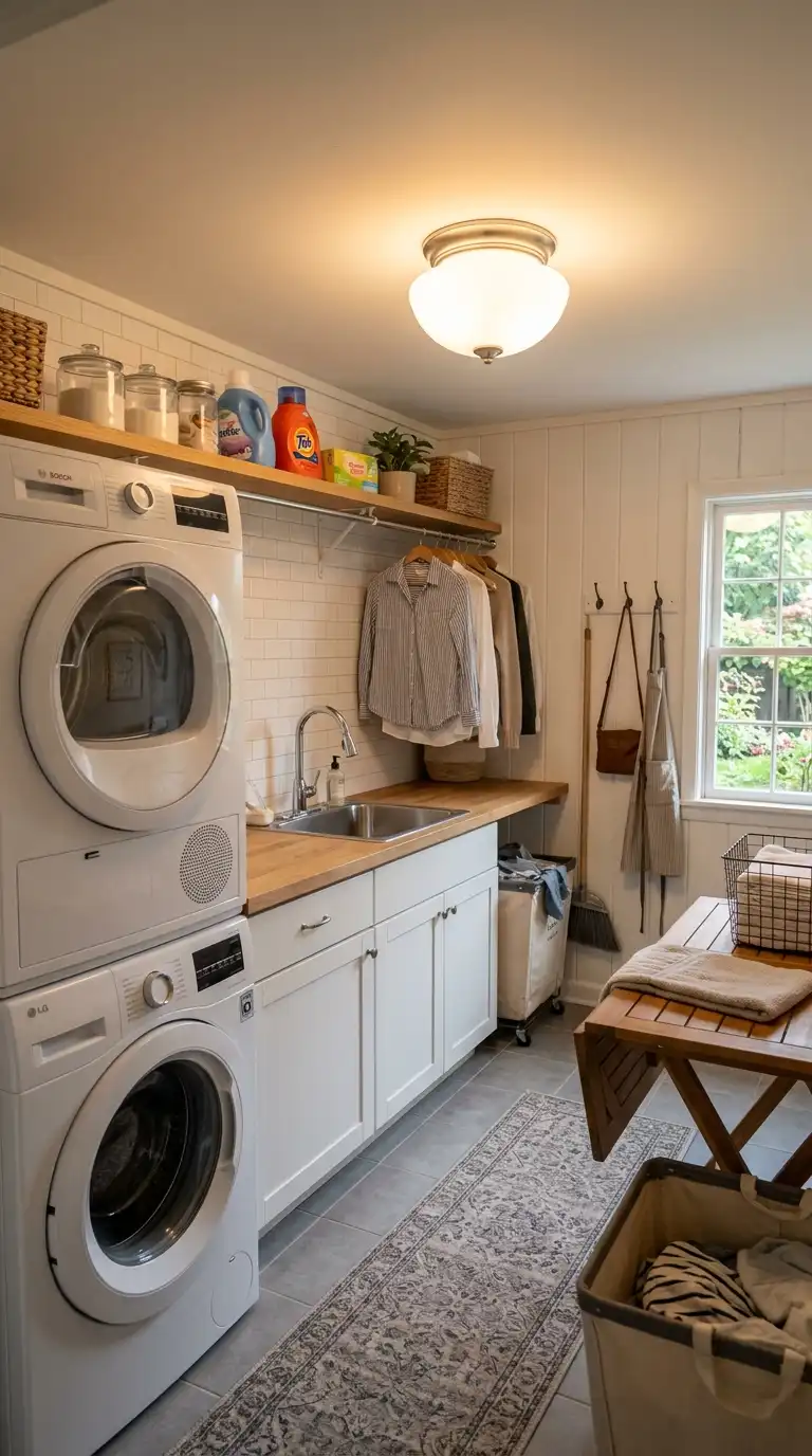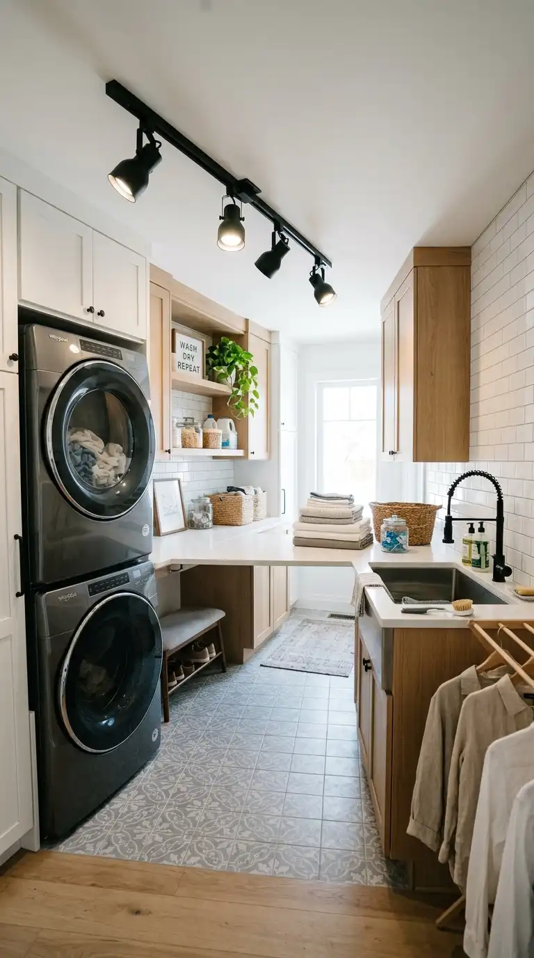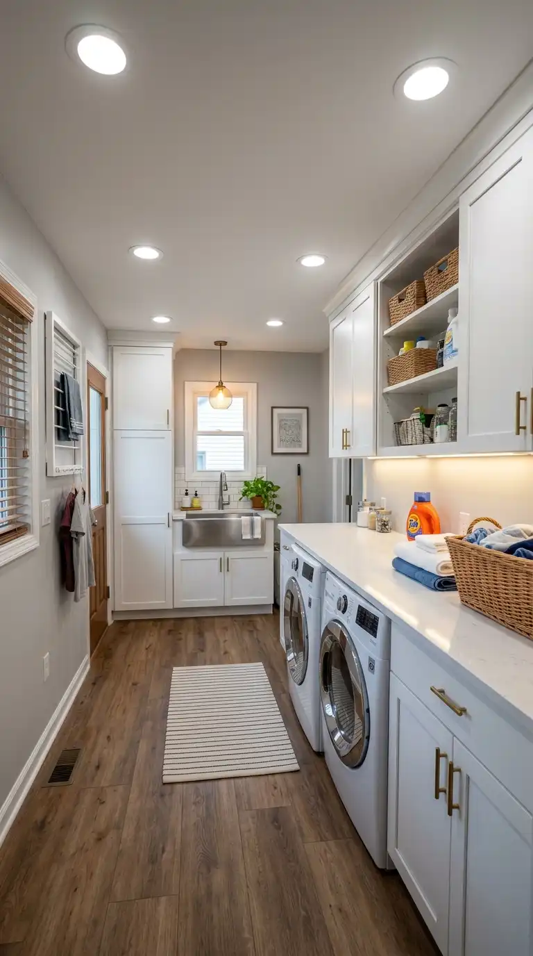 Good lighting transforms a laundry room from a dark, dreary space into a bright, efficient workspace. Use layered lighting—ambient, task, and accent—to ensure every corner is well-lit. Add under-cabinet LEDs for task illumination, a pendant or semi-flush mount for ambient light, and natural light from a window if possible. With the right lighting, you’ll spot stains more easily, sort colors accurately, and actually enjoy spending time in your laundry room.
