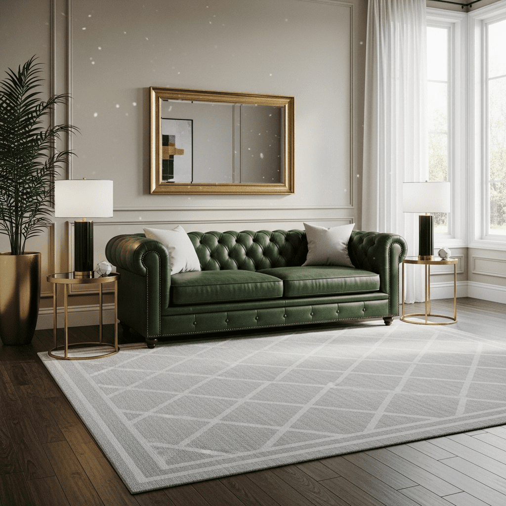A bold departure from neutrals, using dyed emerald green leather on a contemporary frame. It acts as a stunning focal point in an otherwise white or gray room.