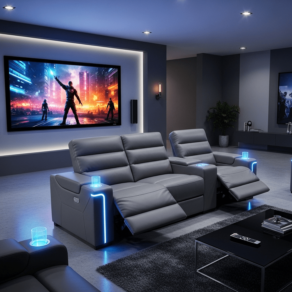 Modern leather recliners featuring integrated USB ports and “zero-gravity” positioning. This look is defined by power-adjustable headrests and sleek, streamlined silhouettes.