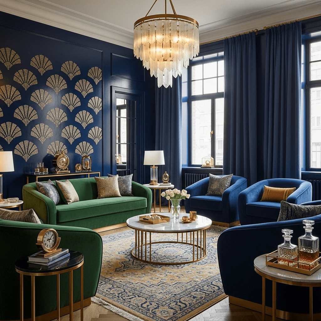 Drawing inspiration from the Roaring Twenties, this fan-shaped pattern adds glamour and movement. It works exceptionally well when executed with metallic gold paint over a navy or emerald backdrop.