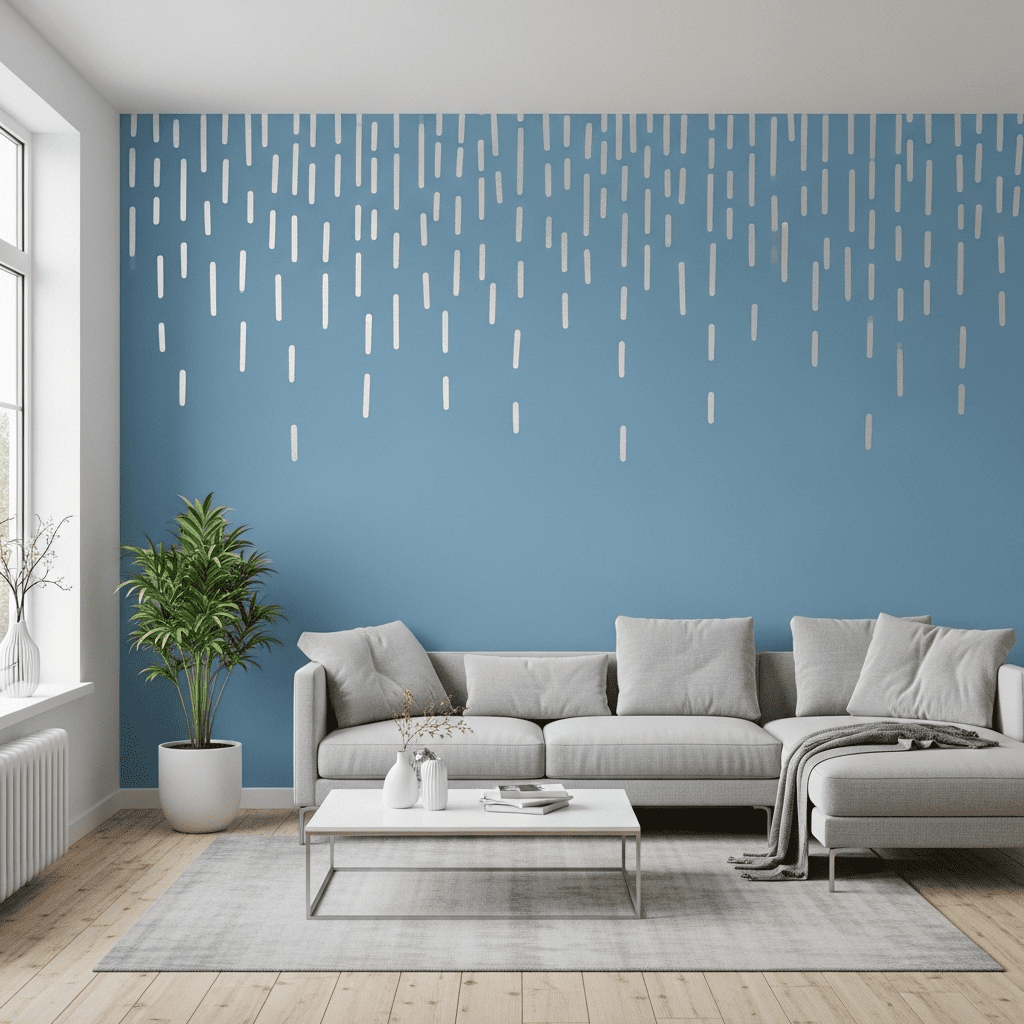 A minimalist pattern of short, vertical dashes of varying lengths. It creates a rhythmic, calming texture that draws the eye upward, making the ceiling feel higher.