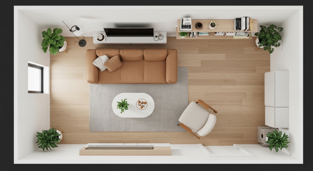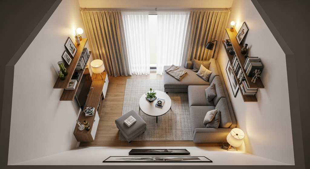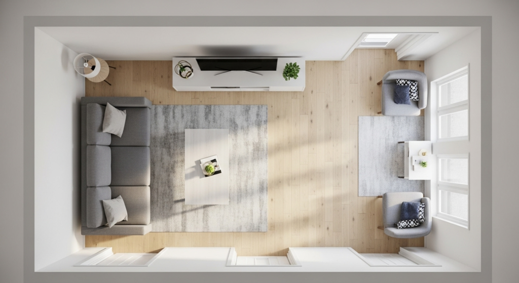 Traffic Paths Matter: Always maintain at least 30-36 inches of walkway space for comfortable movement through the room. This is non-negotiable in narrow apartments where the living room often serves as a passage to other rooms.