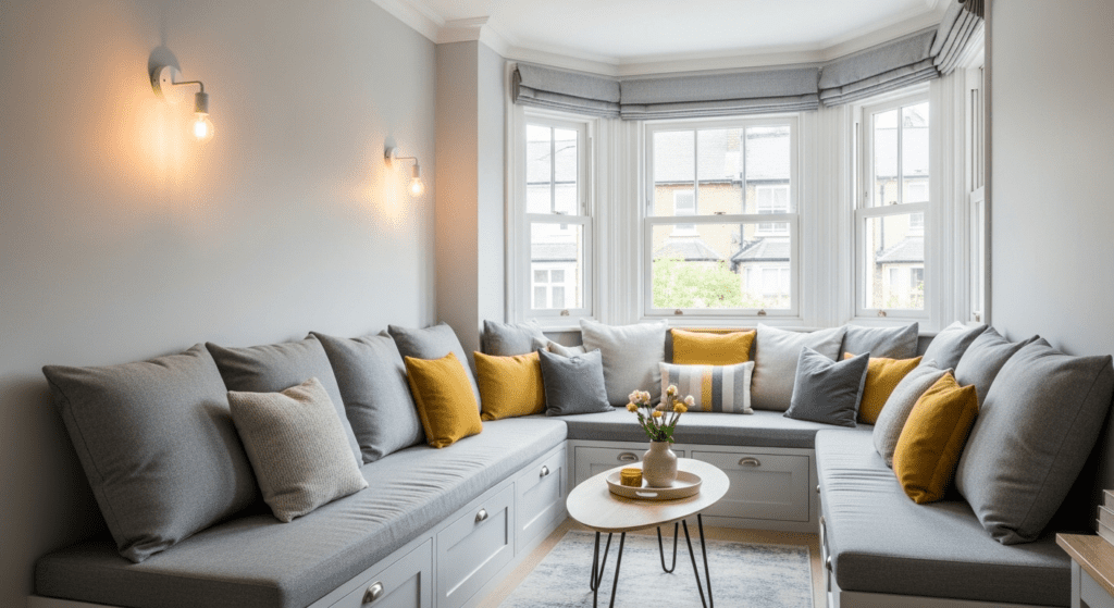 Furniture Scale: Choose furniture appropriately scaled to your bay window’s size. Measure the depth of the bay alcove carefully—typically 2-4 feet—and select pieces that fit comfortably without protruding awkwardly into the main room.