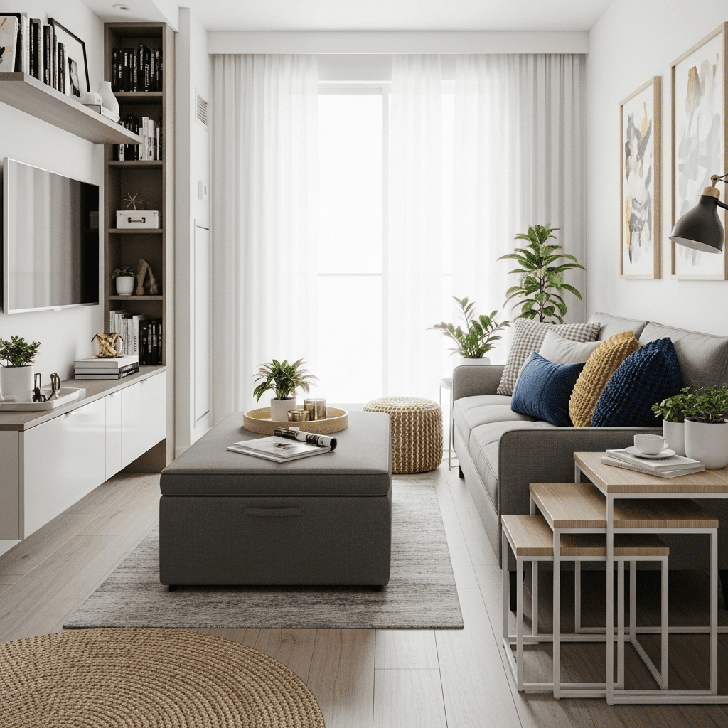 Choose a storage ottoman that serves as coffee table and holds blankets, a sofa bed for overnight guests, nesting tables that tuck away when not needed, and a media console with ample storage. Every piece should earn its place through multiple functions.