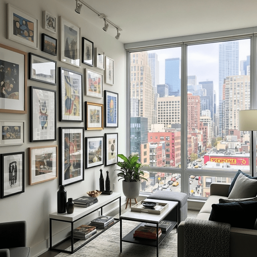 Choose frames and artwork that reflect your style—modern abstract, black and white photography, colorful prints. The gallery wall makes your condo feel personal and collected rather than generic.