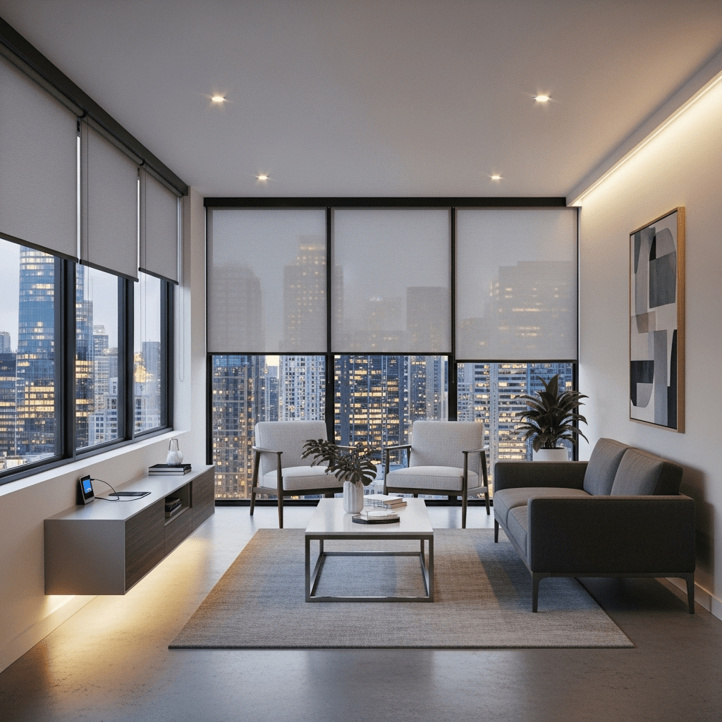 Install smart lighting that adjusts throughout the day, motorized blinds controlled by app, smart thermostat for climate control, and concealed charging stations. The technology reduces clutter from cords and switches while adding functionality.