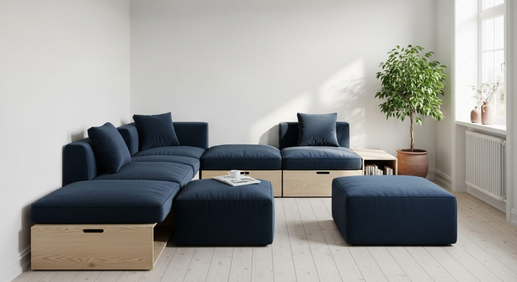 Invest in a modular corner sofa system that you can reconfigure as needed. These flexible pieces let you adjust your layout for different occasions, from intimate movie nights to larger gatherings. Look for modules with storage compartments to maximize functionality in your narrow space.