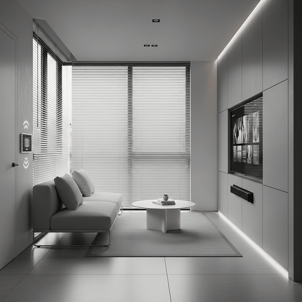 Include smart lighting, motorized blinds, concealed charging stations, voice-controlled features. Hide technology for clean modern aesthetic while maintaining cutting-edge functionality.