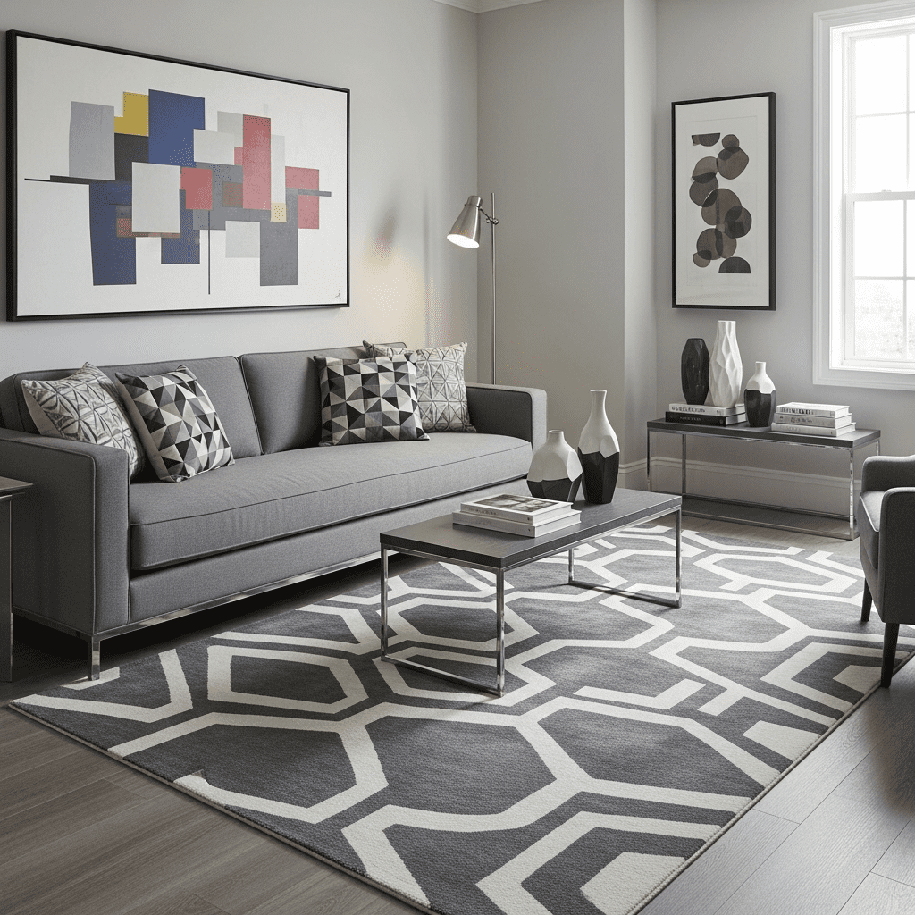Incorporate geometric patterns in rugs, pillows, or artwork for modern visual interest.