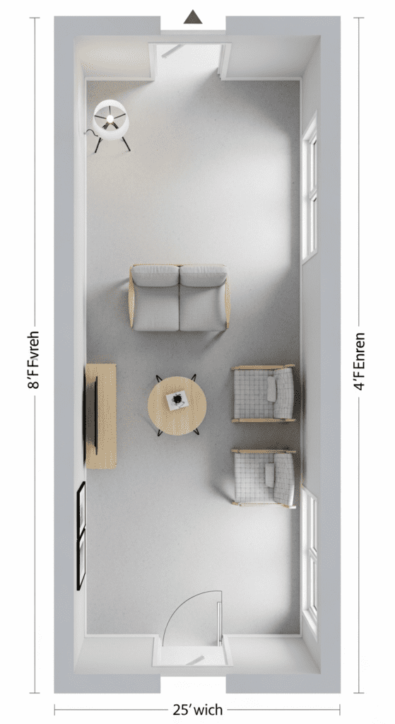 12 Long Narrow Living Room with Two Entrances Layout
