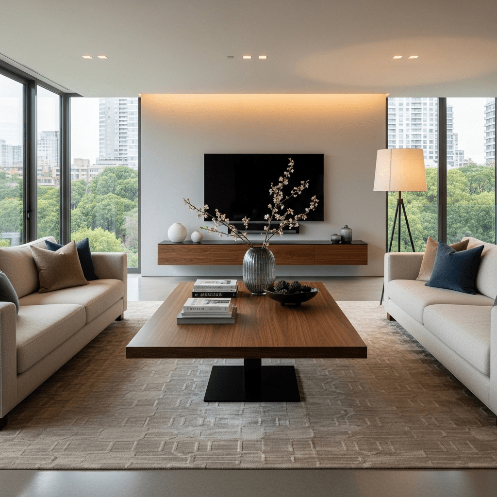 Modern living room center table ideas should serve as the unifying “punctuation mark” of your seating area. Whether you prefer the grounding weight of a stone block or the airy transparency of glass, the table should provide a distinct material contrast to your sofa. Focus on a design that reflects the light in your room—using reflective metals or glass to brighten dark spaces, or matte stones and woods to soften bright, sunlit interiors.