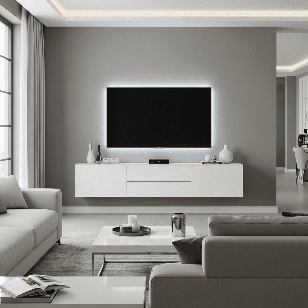 Budget-Friendly: Simple floating shelves with mounted TVs or basic IKEA systems provide modern looks affordably. Focus budget on quality TV mount and cable management.