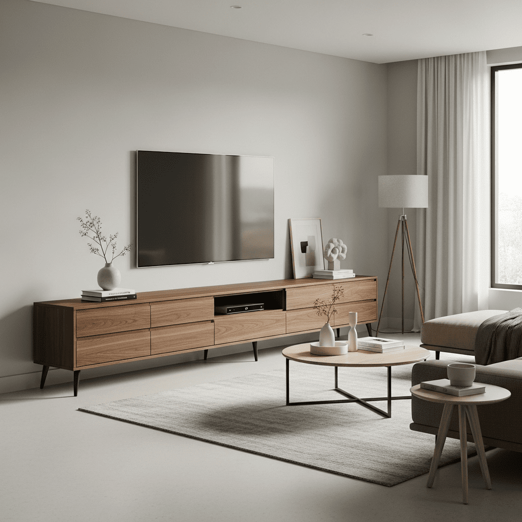 Proportional Balance: Units scale appropriately to both TV size and room dimensions. The TV shouldn’t overwhelm the unit, nor should massive cabinetry dwarf a modest screen.