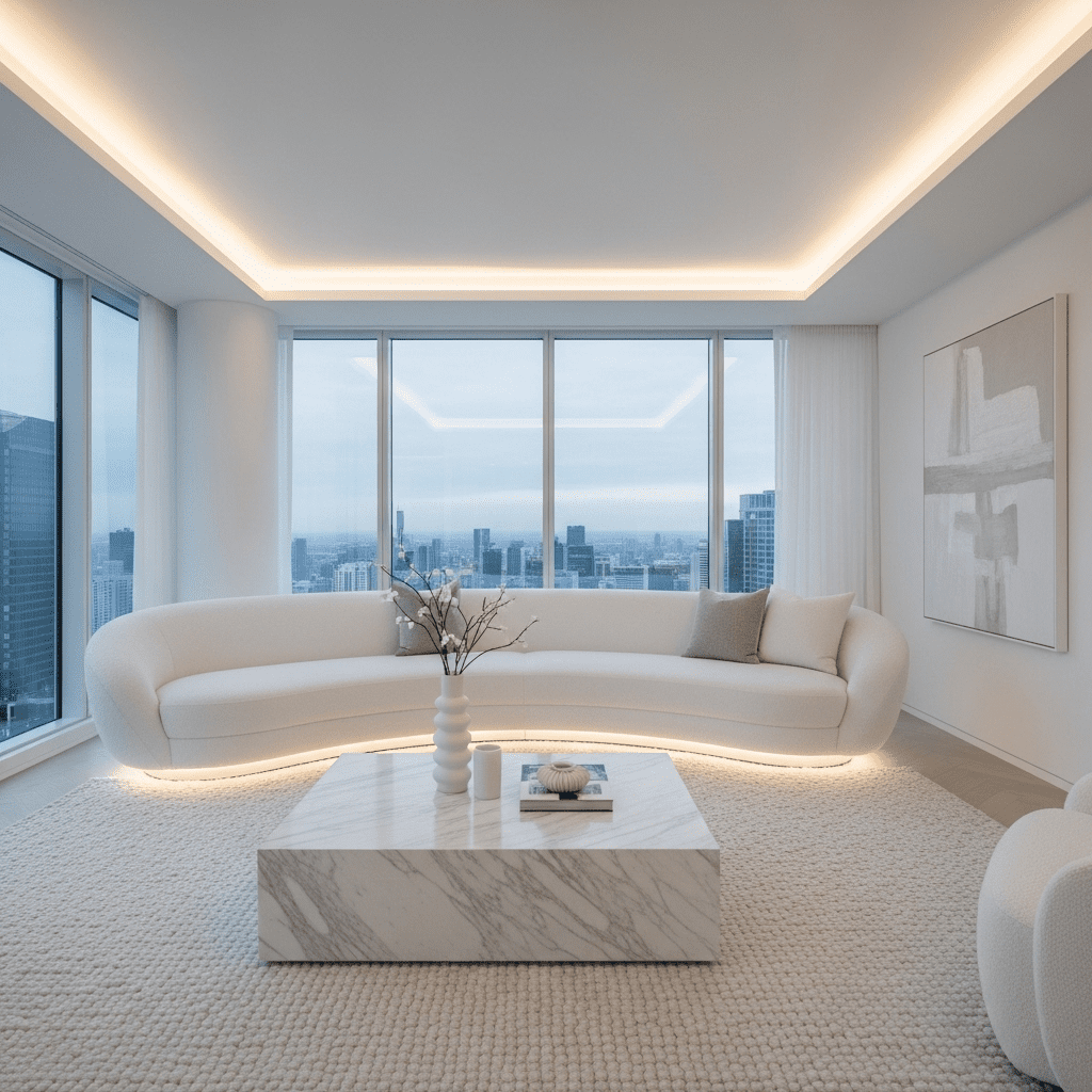 Embrace the power of restraint with an all-white or neutral palette featuring varied textures. Luxury lies in the quality of materials—think Italian leather, cashmere throws, and polished marble surfaces that create depth without color.