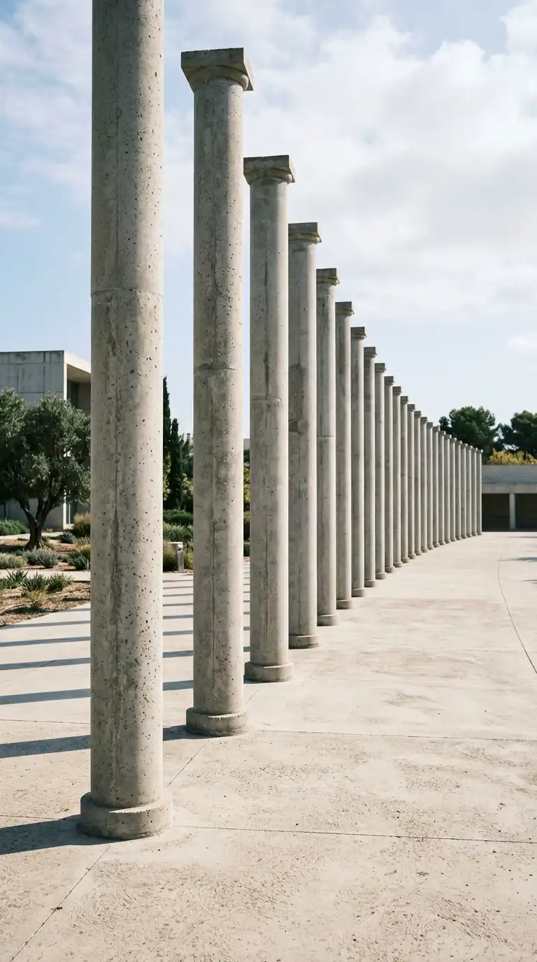 The colonnade without entablature has columns but no horizontal beam above them. The columns support nothing. They are freestanding. The colonnade without entablature is rhythmic, abstract, and modern.