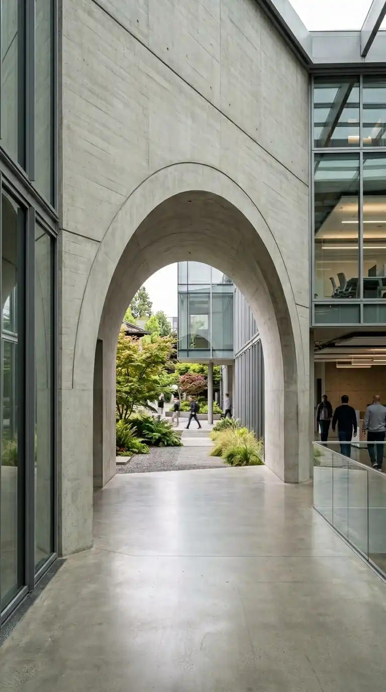 The arch without keystone is a semicircular opening with no visible keystone. The arch is smooth and continuous. The arch without keystone is smooth, continuous, and modern.