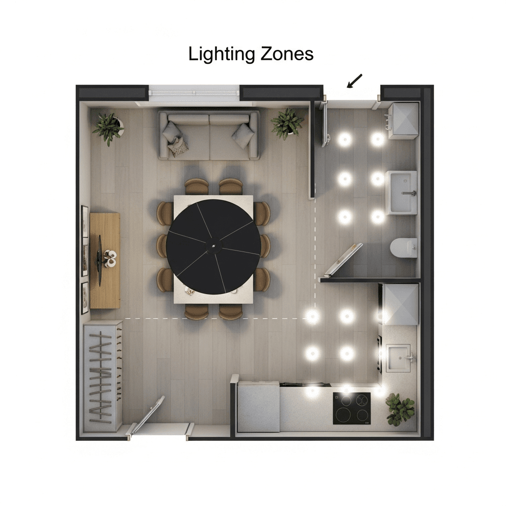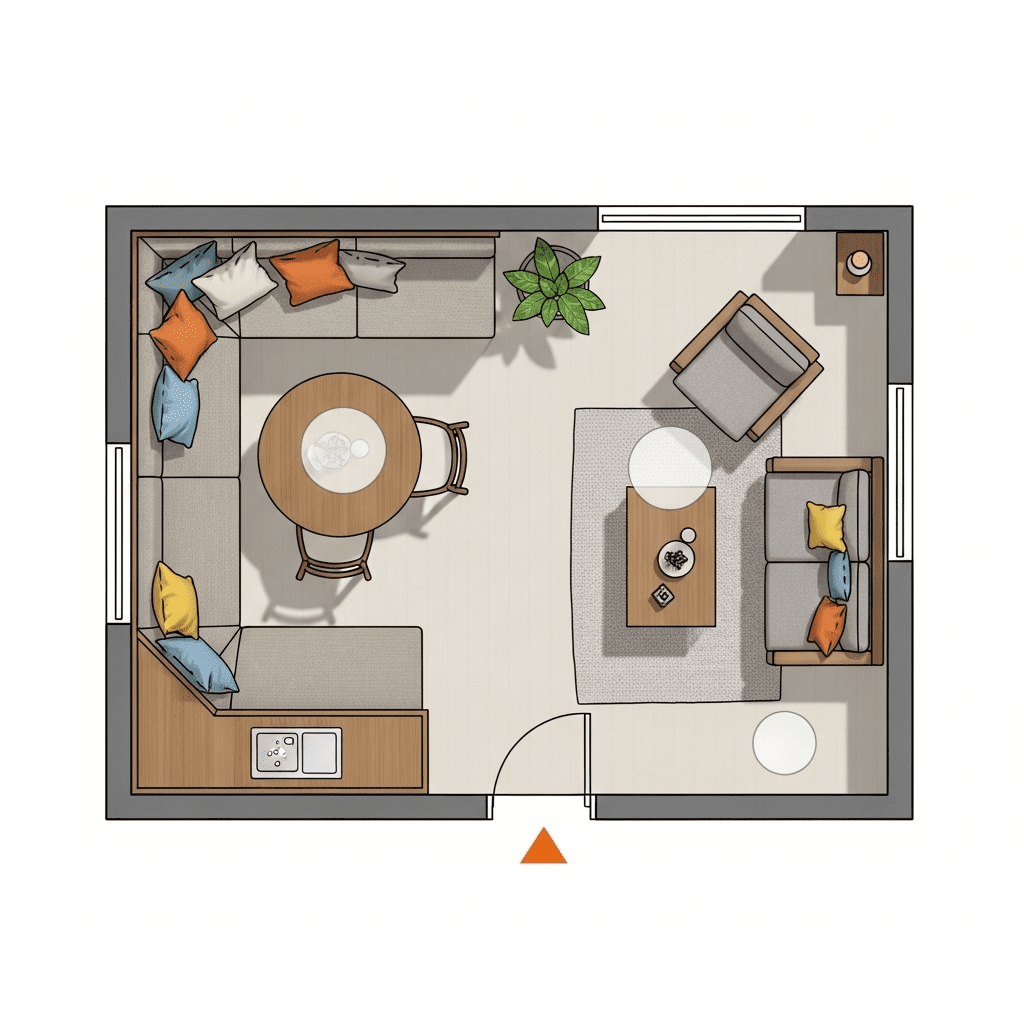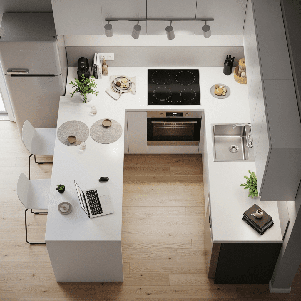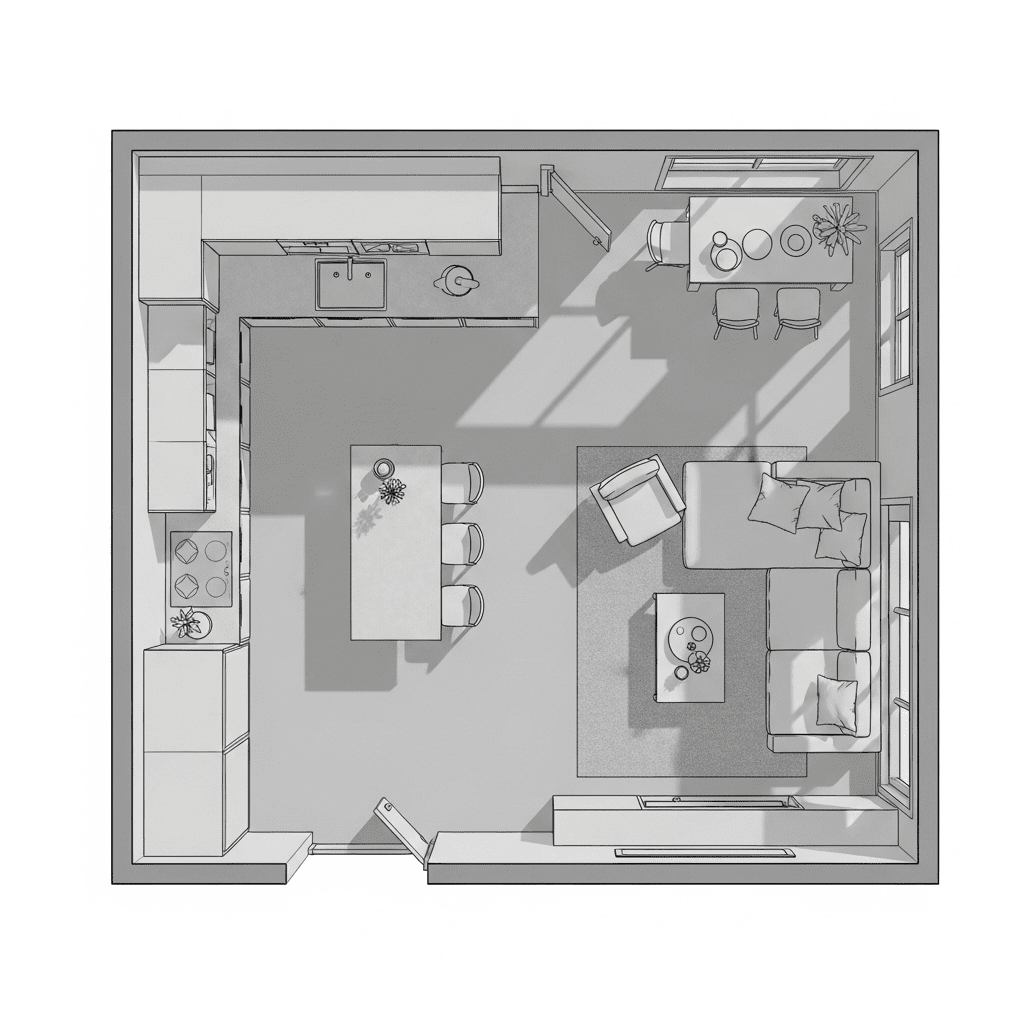 Successfully designing a small open-concept apartment is about mastering the “visual flow.” By looking at your home from a top-view perspective, you can ensure that walkways are clear and that each zone—kitchen, dining, and living—has enough breathing room to function independently. Stick to multi-purpose furniture and a cohesive material palette to keep the space looking sophisticated and serene.