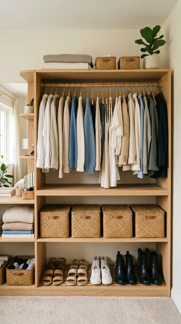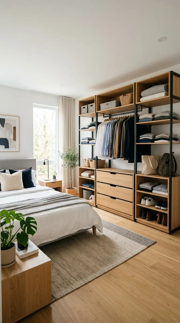 Use uniform hangers, fold items neatly, and organize by category and color. Limit the number of items to what fits comfortably without crowding. Use matching storage boxes for smaller items. Regularly edit to remove items you no longer wear. The key is to treat the wardrobe as a display rather than a storage catch-all. - Is an open wardrobe practical for a small bedroom?