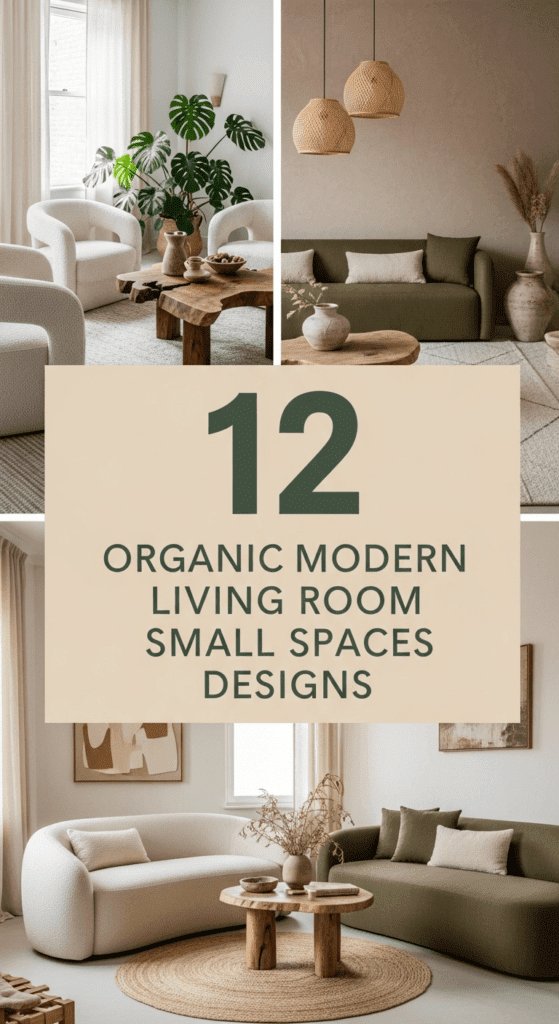 Organic modern living room small spaces designs blend the clean, minimalist lines of contemporary architecture with the raw, tactile elements of nature to create a serene and grounded atmosphere. In a compact footprint, this style relies on a “soft-minimalist” approach, prioritizing natural light, rounded furniture silhouettes, and a palette of earth tones to ensure the room feels expansive yet incredibly cozy. By using sustainable materials like reclaimed wood, linen, and stone, you can transform a small area into a sophisticated sanctuary that feels breathable and connected to the outdoors. Here are 12 designs to master the organic modern aesthetic in a small home.