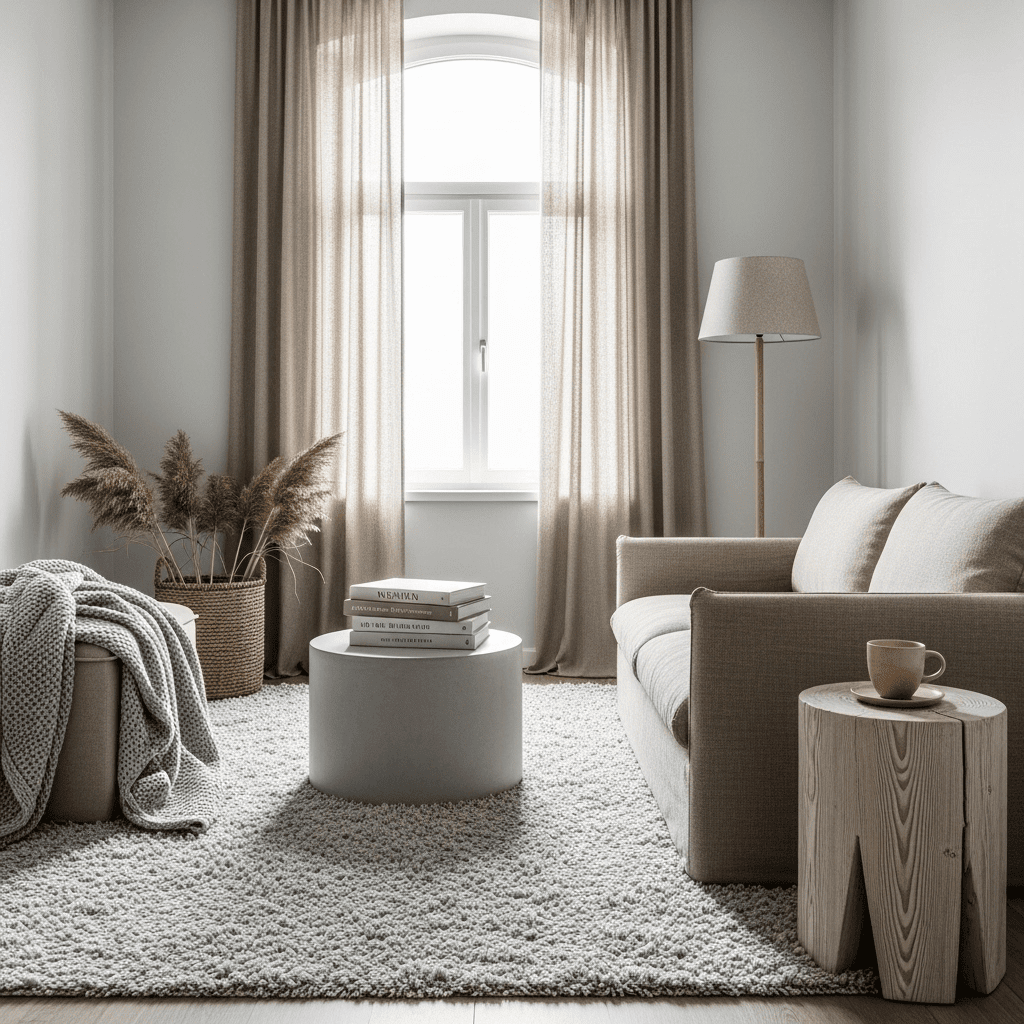 Organic modern living room small spaces designs prioritize diffused natural light. Using sheer, floor-to-ceiling linen curtains in an oatmeal or bone shade allows light to flood the room while adding a soft, vertical texture that makes the walls feel taller.