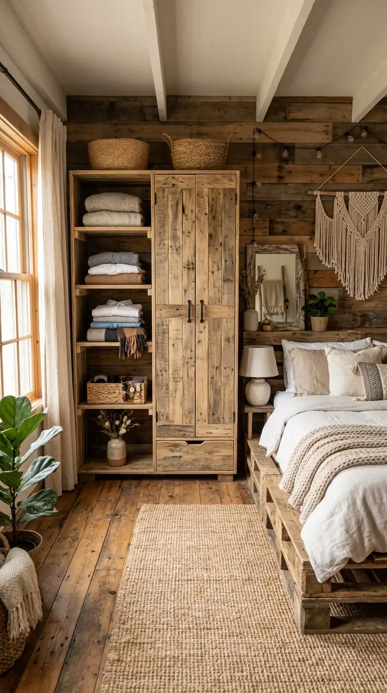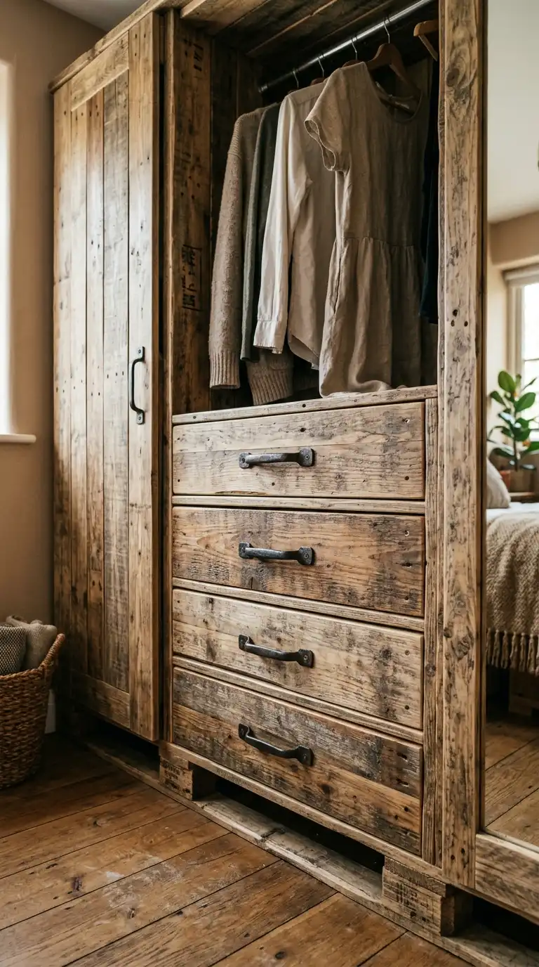 11. Pallet Wardrobe with Built-In Drawers