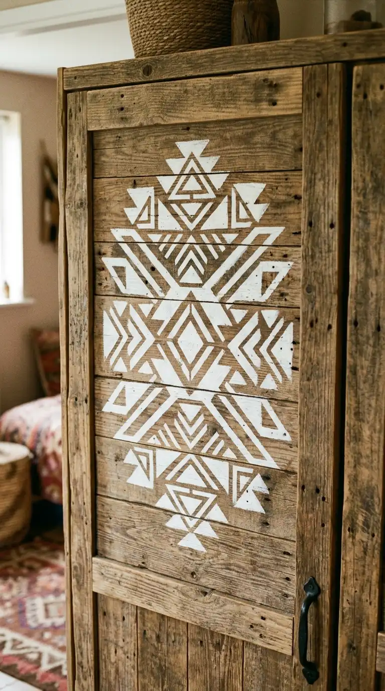 12. Pallet Wardrobe with Stenciled Design