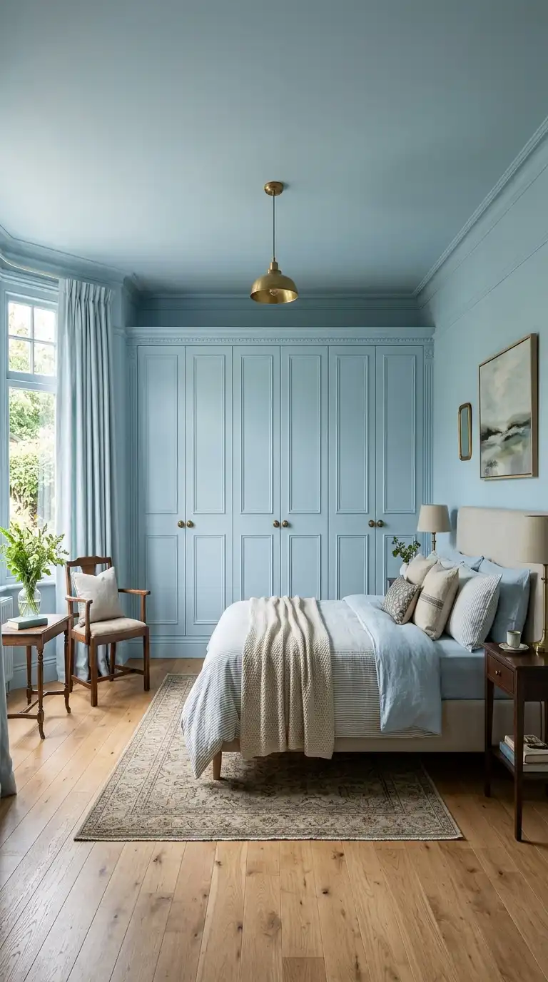 Painting your PAX wardrobe is one of the simplest ways to make it feel like an intentional part of the room. For a calm and cohesive feel in smaller bedrooms, paint the doors the same color as the walls. Alternatively, choose a striking heritage color like rich olive or deep charcoal blue for a statement piece. Use a deglosser to prepare the surface, apply a bonding primer like Zinsser B-I-N, then follow with two coats of durable water-based enamel for a smooth, lasting finish. This technique allows you to customize the wardrobe to your exact color scheme.