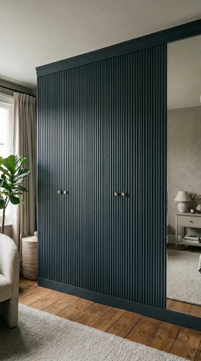 Fluted or ribbed MDF panels are a stunning way to add texture and architectural interest to PAX doors. Affix the panels to the door fronts, then paint the entire unit in a modern, on-trend color. This creates a designer look that feels custom-made and contemporary. Mini fluted panels work well for a subtle texture, while deeper ribs make a bold statement. The vertical lines also draw the eye upward, making ceilings appear higher. This hack transforms plain doors into a sophisticated design feature.