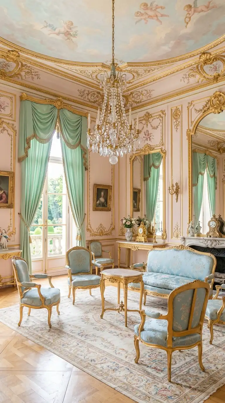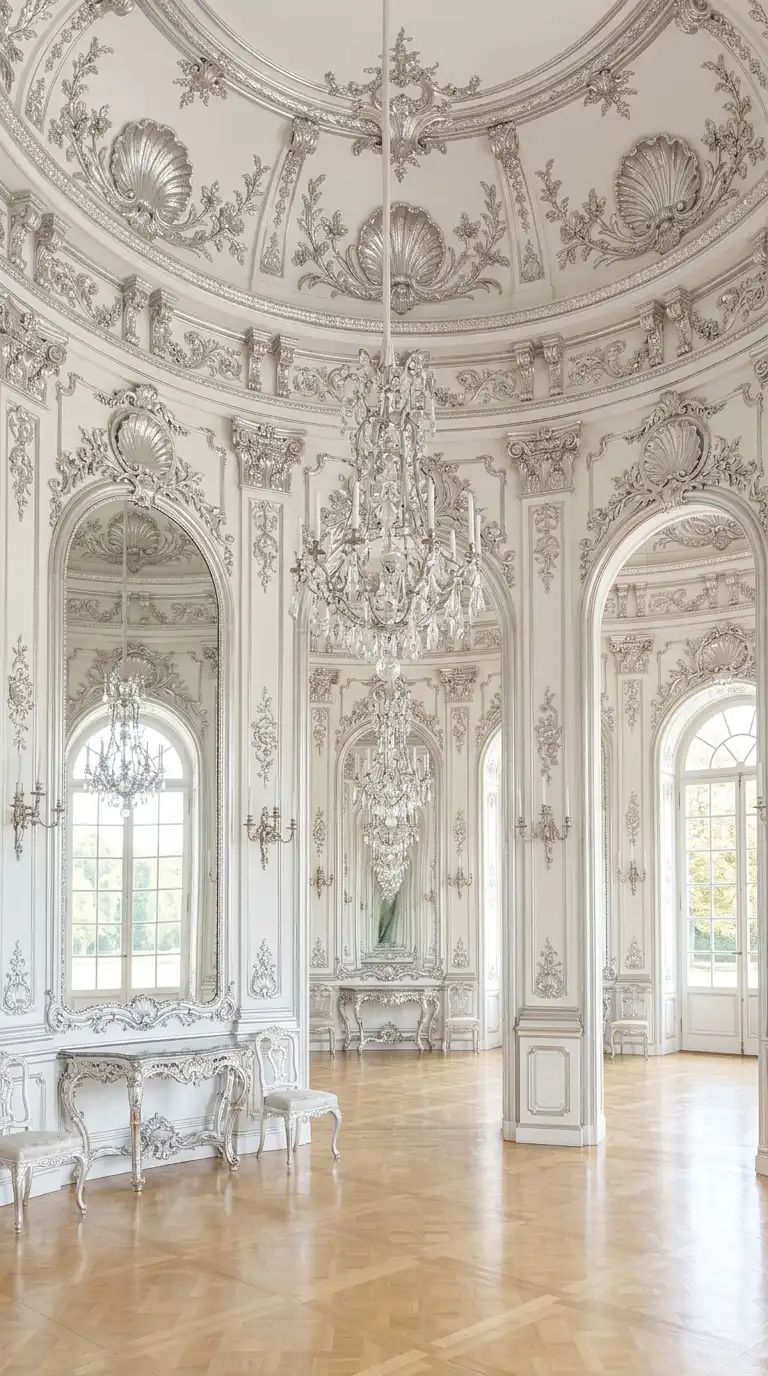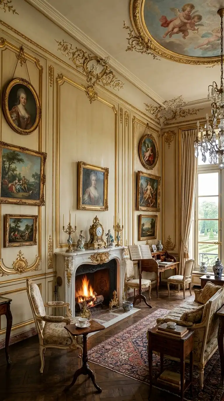The salon is the heart of the Rococo interior. The walls are panelled in white and gold. The ceiling is painted with clouds and cherubs. The mirrors reflect the light. The furniture is curved and gilded. The salon is light, playful, and social.