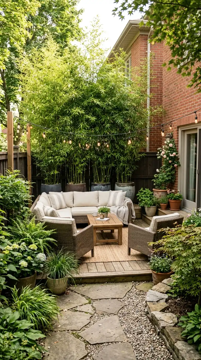 Privacy is essential in a small backyard, especially if you’re close to neighbors. Use a trellis with climbing vines, a row of tall grasses, or a living wall to create a natural screen. Bamboo in containers offers a fast-growing option, while evergreen hedges provide year-round coverage. A green privacy screen adds beauty while creating a sense of seclusion.