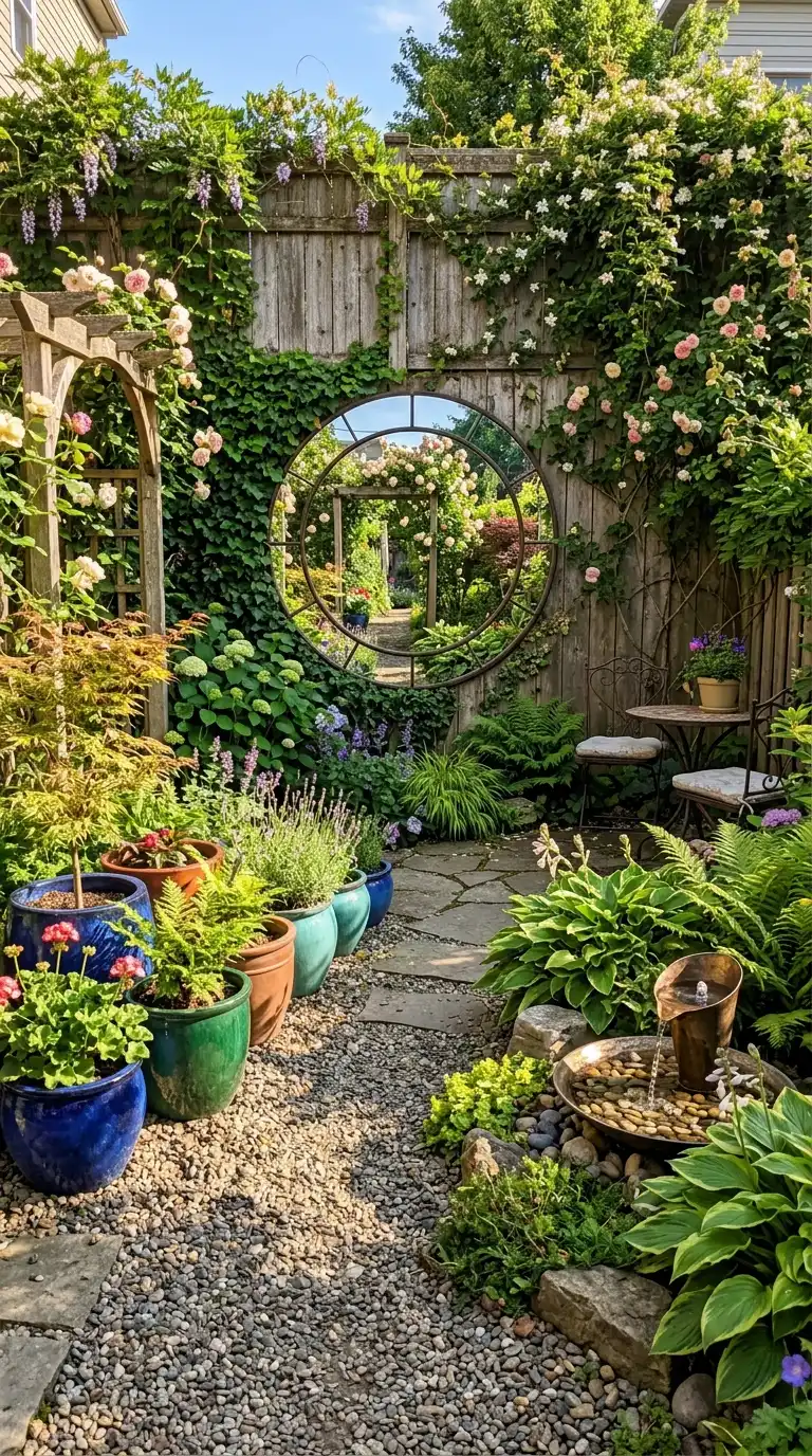 Mirrors and reflective surfaces can visually expand a small backyard. Place a weather-resistant mirror on a fence or wall to create the illusion of depth. Use glossy pots, metal planters, or a reflective water feature to bounce light around the space. Reflective elements add sparkle and make the area feel larger.