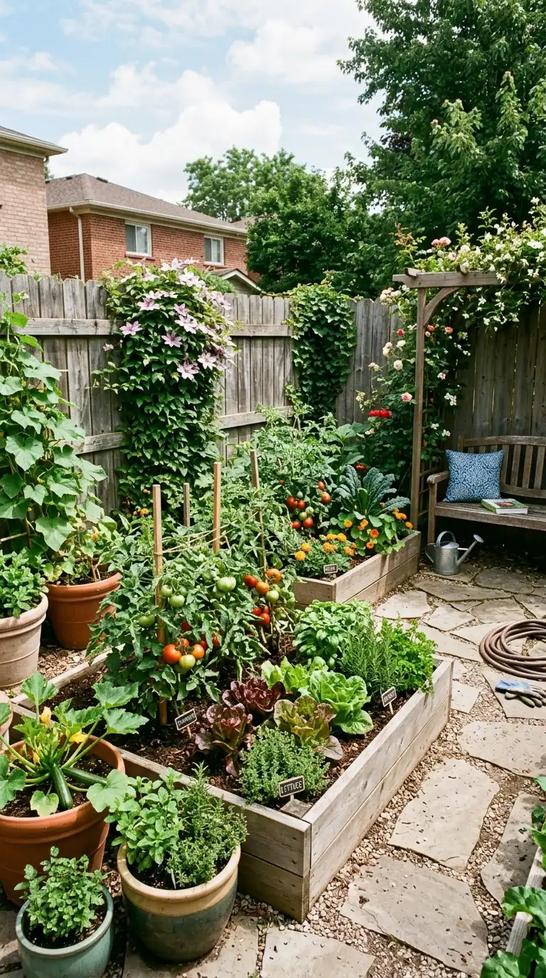 Grow your own food in a small backyard with a compact vegetable or herb garden. Use raised beds, containers, or vertical planters to maximize growing space. Plant herbs like basil, mint, and rosemary in pots near the kitchen. A small raised bed can accommodate lettuce, tomatoes, and peppers. The garden adds beauty and provides fresh ingredients.