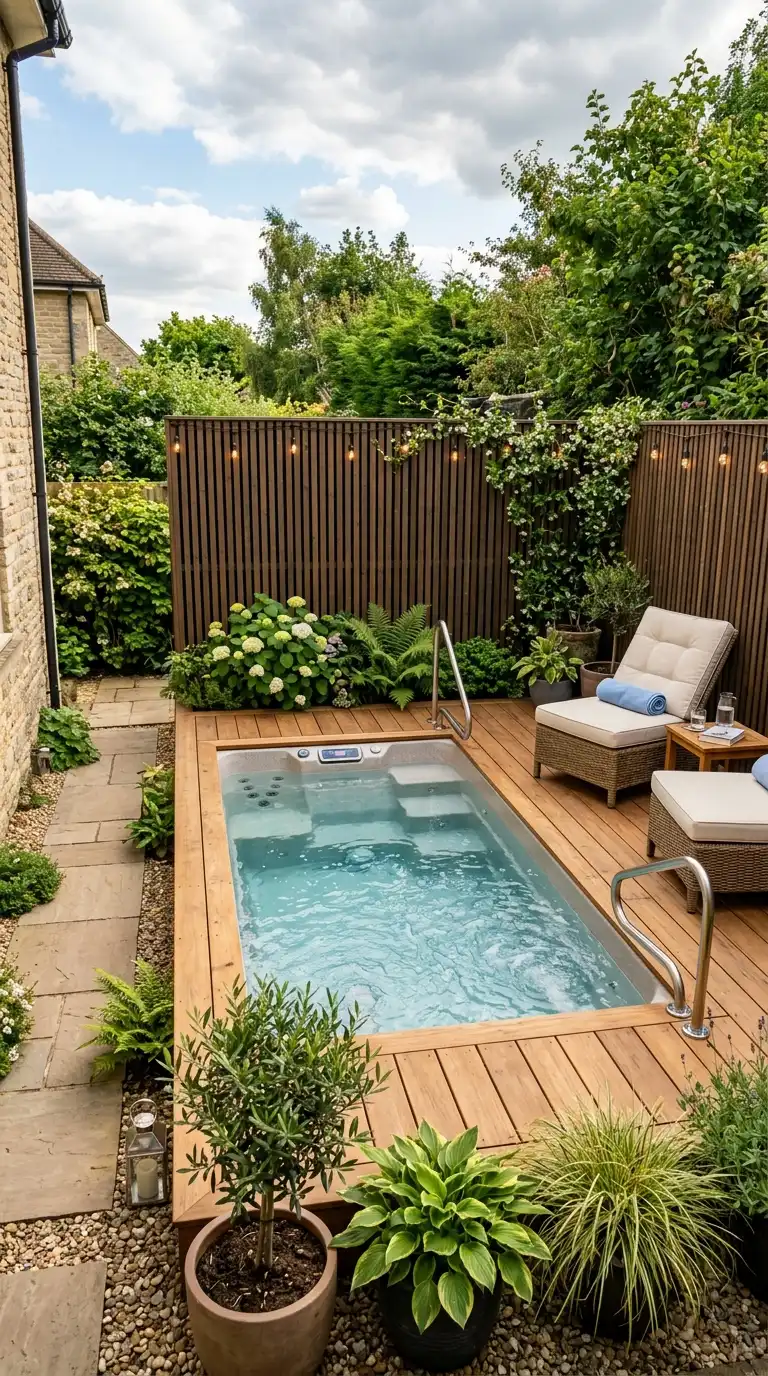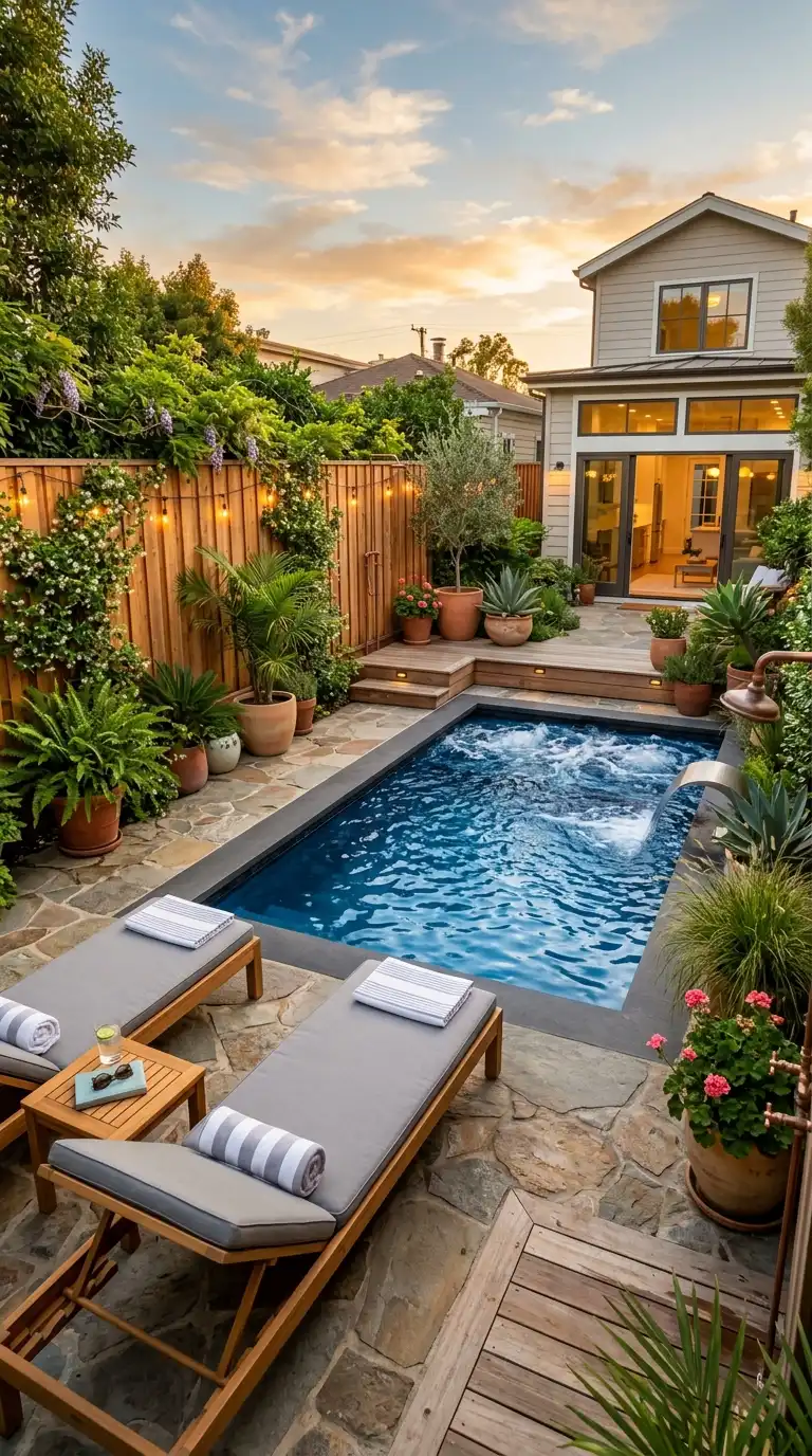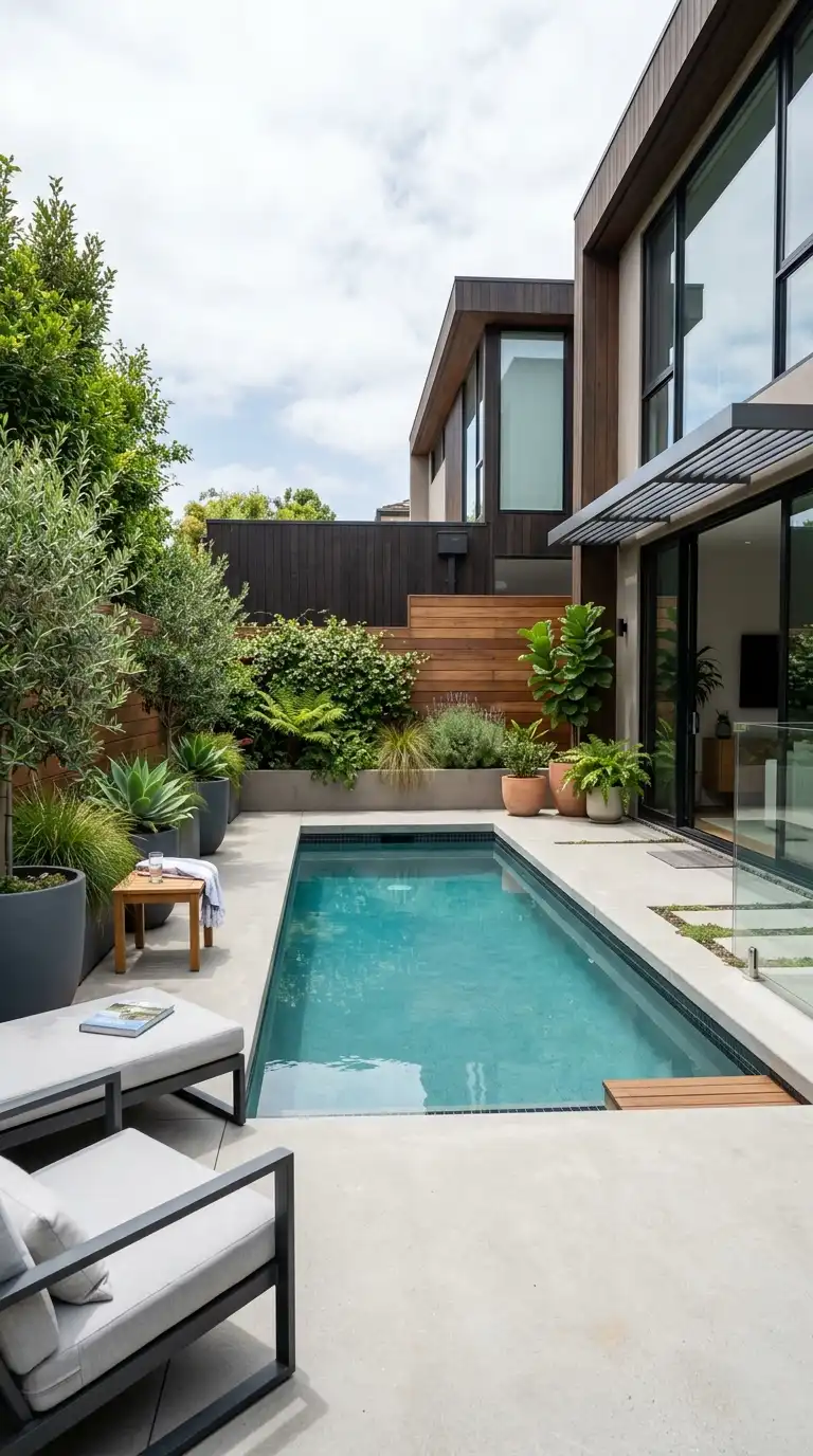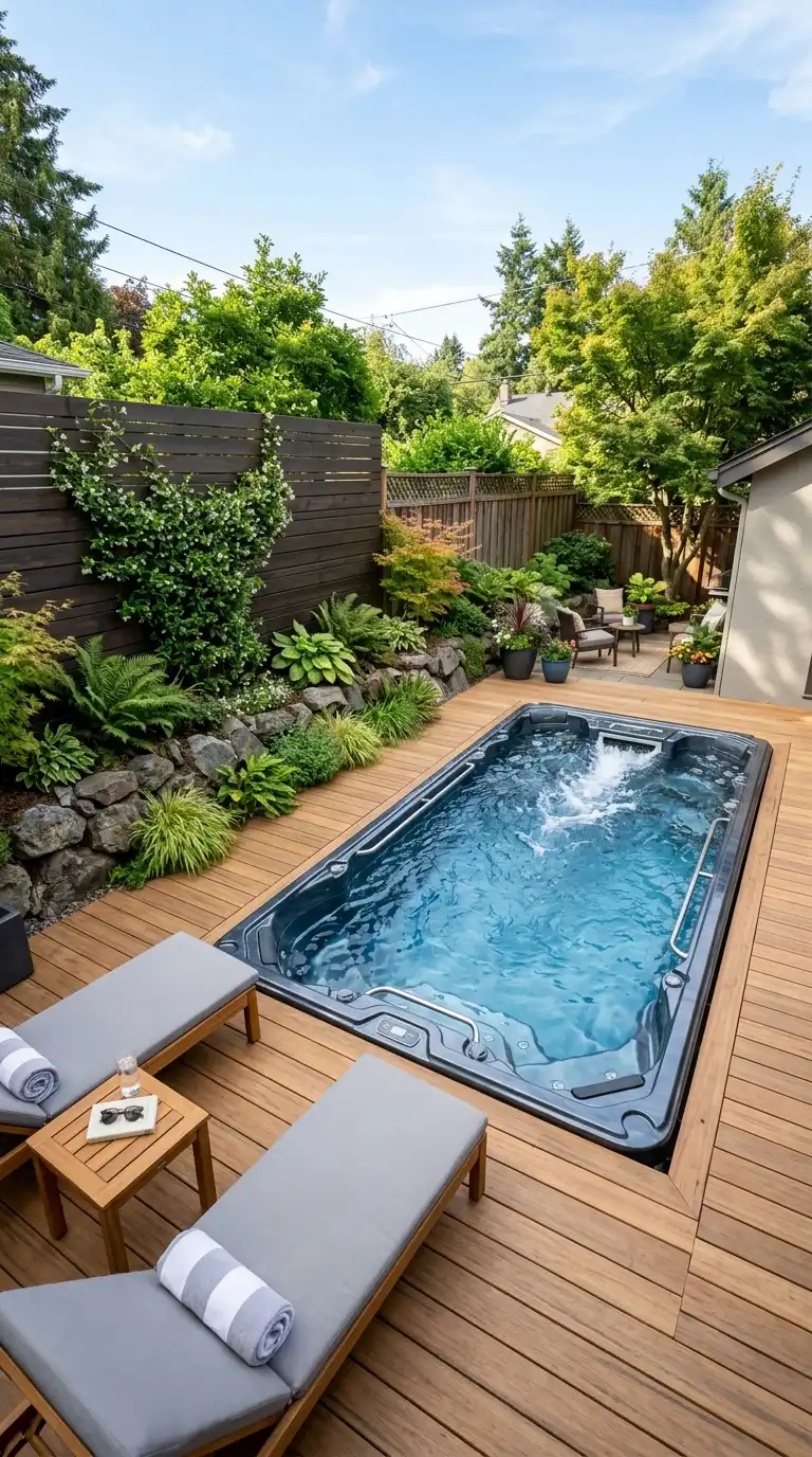 A plunge pool is a compact, deep pool designed for cooling off and relaxation rather than swimming laps. Its small footprint makes it ideal for tight urban backyards or courtyard spaces. Plunge pools can be combined with hydrotherapy jets, making them perfect for exercise and muscle relaxation. Choose a sleek, rectangular design with clean lines, and surround it with a minimal deck or patio to maximize usable space.
