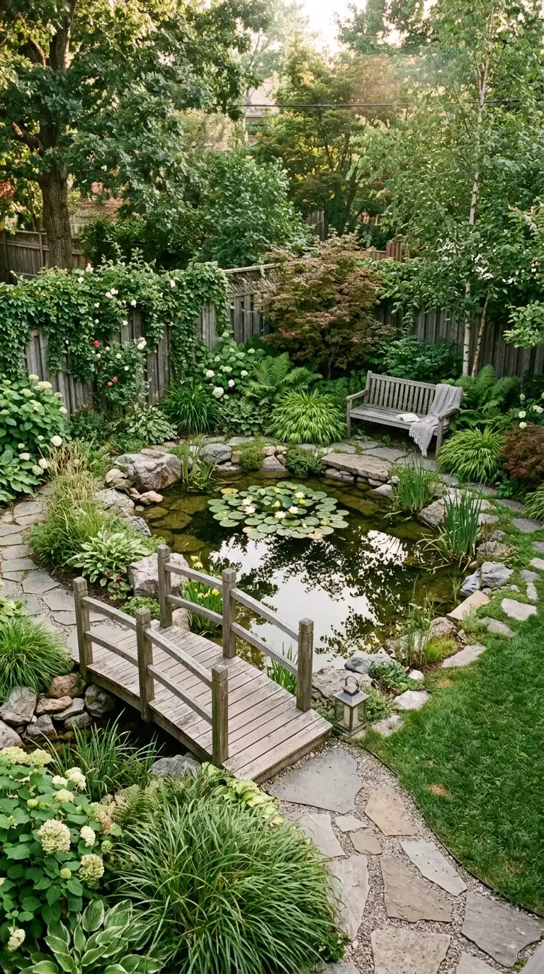 A naturalistic pool mimics the organic shapes and lush plantings of a natural pond. Use irregular curves, natural stone, and water plants like lilies and rushes to create a soft, organic look. The pool can be designed with a separate regeneration zone for filtration, using plants instead of chemicals. A naturalistic pool blends seamlessly into a small garden, creating a serene, wildlife-friendly retreat.