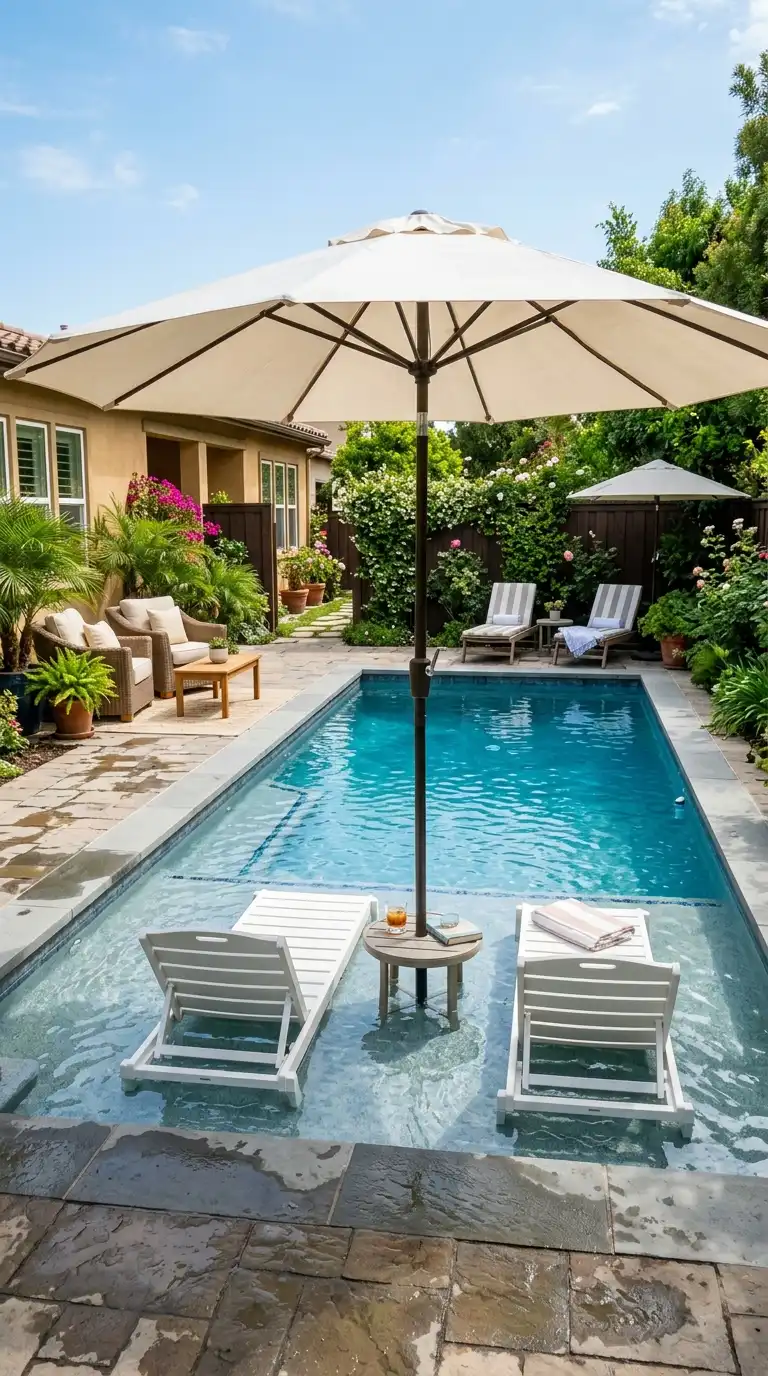 A tanning ledge, also known as a Baja shelf, is a shallow area within the pool designed for lounging in just inches of water. It’s perfect for sunbathing, reading, or keeping young children safe and cool. In a small pool, a tanning ledge can serve as the primary lounging area, maximizing the usable space. Position the ledge where it gets ample sunlight throughout the day.