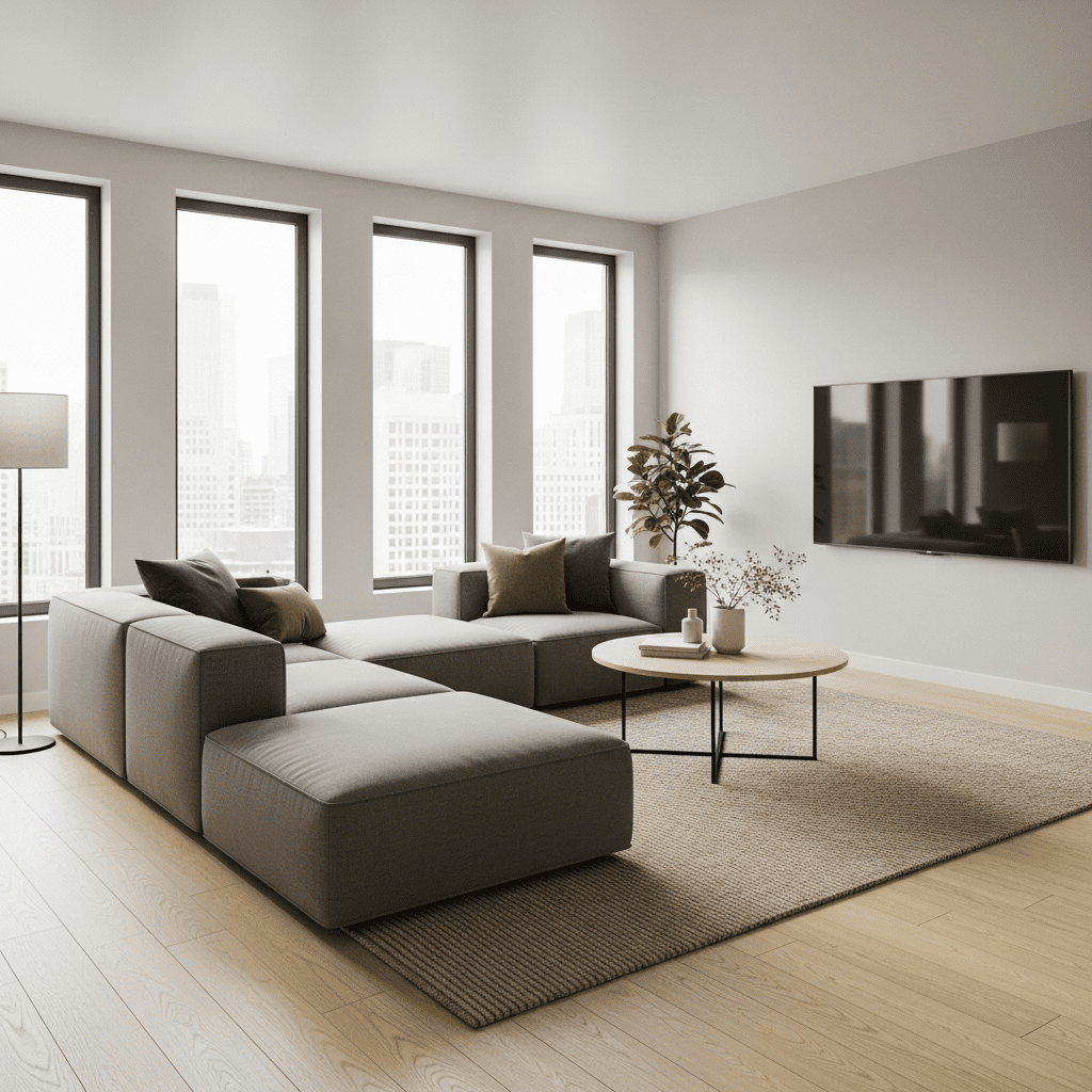 Choose a sofa with a low back and deep seats. This keeps the sightlines open across the apartment, preventing the furniture from acting as a visual “wall” in a small space.