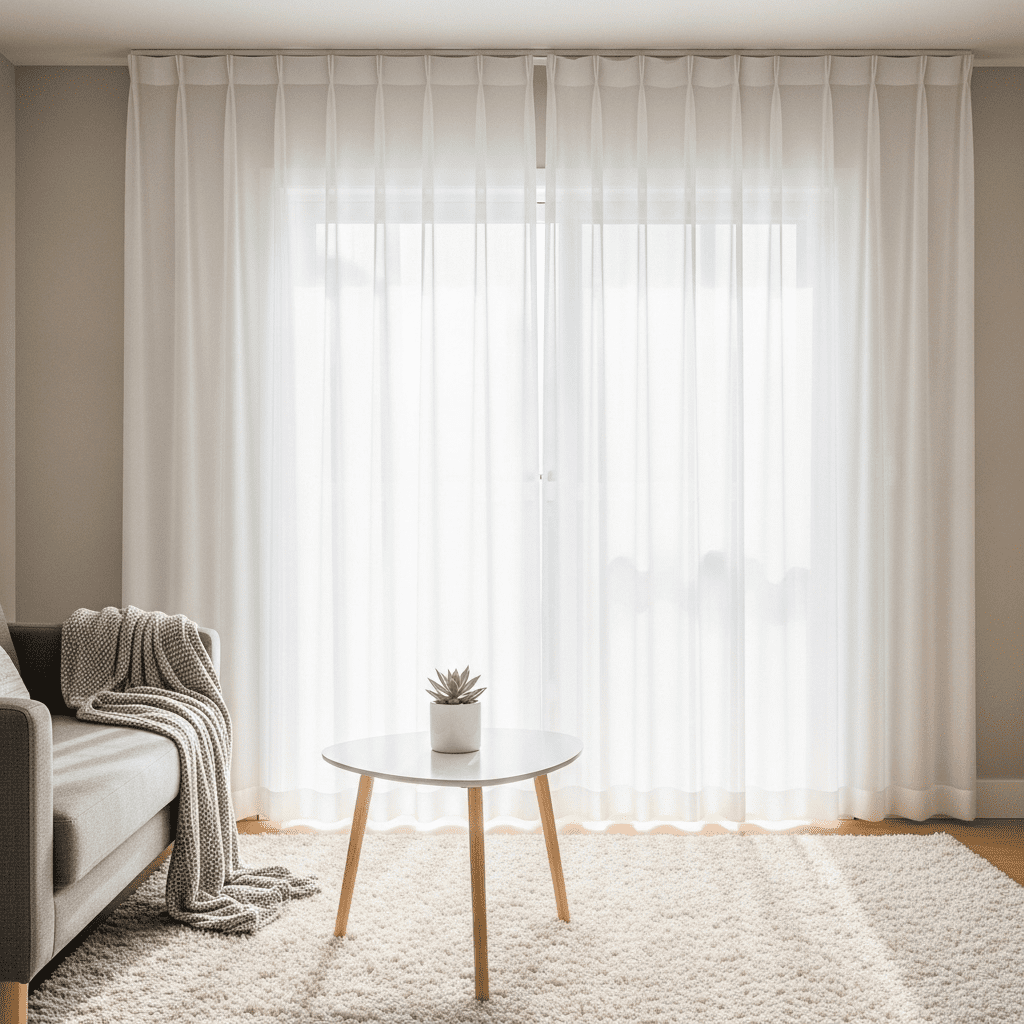Hang sheer curtains from a track on the ceiling rather than just above the window. This vertical line draws the eye up, making standard apartment ceilings feel much higher.