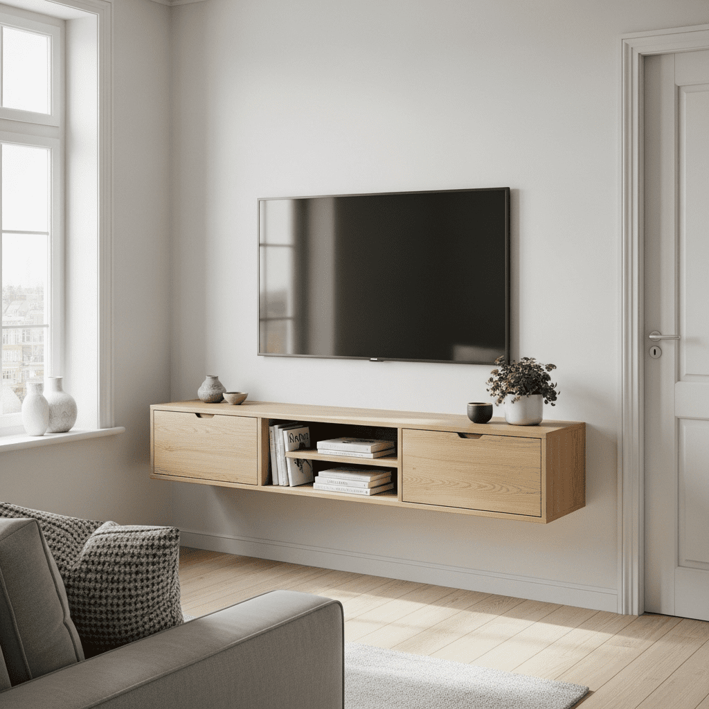 Mount your TV and a slim console directly to the wall. Keeping the floor clear underneath the unit creates a sense of “flow” and makes the room easier to clean.