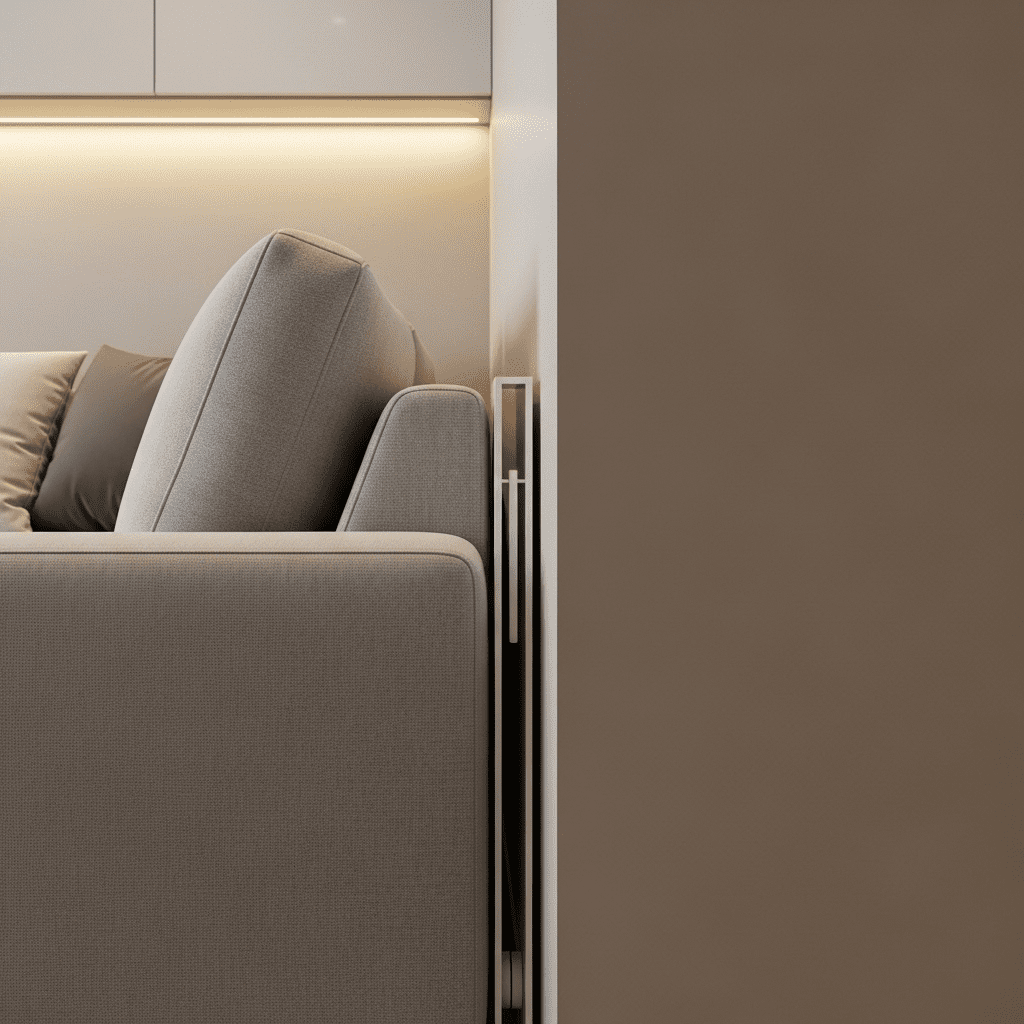 In small apartments, every gap counts. Use ultra-thin “gap fillers” or rolling pantry-style shelves for the spaces between the sofa and the wall to store remotes and magazines.