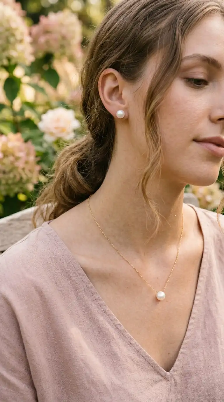 Delicate pearl or gold jewelry adds a touch of elegance to soft summer outfits. Choose simple studs, a pendant necklace, or a thin chain bracelet. The subtle shine complements the muted colors without overpowering them.