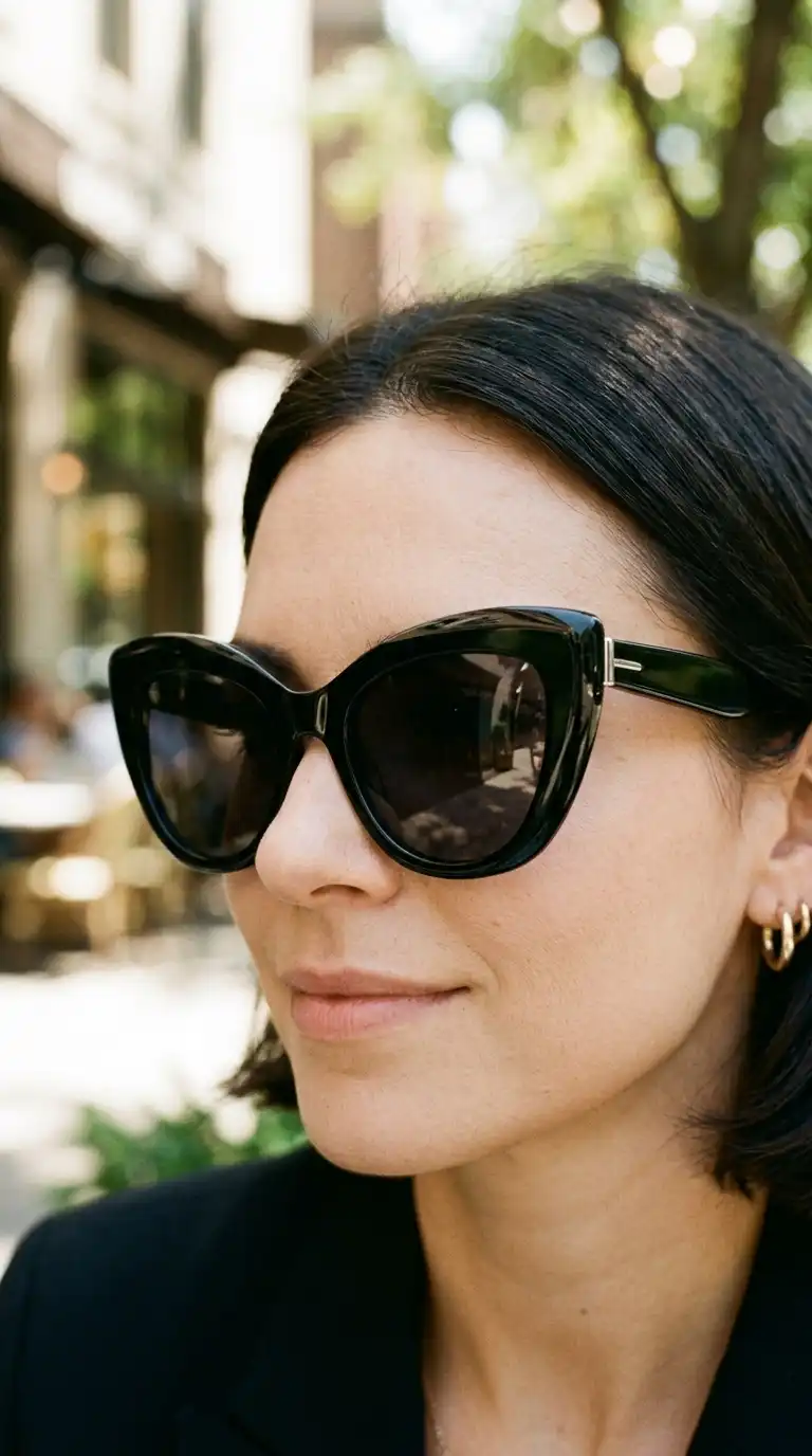 Oversized sunglasses add glamour and sun protection to summer outfits. Choose a classic shape like cat-eye, square, or round, in a neutral frame color that complements your style.