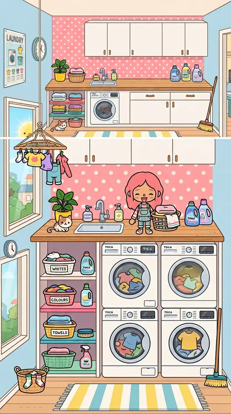 In Toca Boca, the popular digital play world known for its creative building and roleplay features, even functional spaces like the laundry room can be designed with imagination and personality. A well-designed laundry room adds realism and charm to your virtual home. From colorful machines and fun storage to whimsical decor and organized clutter, here are twelve Toca Boca laundry room ideas to inspire your next build.