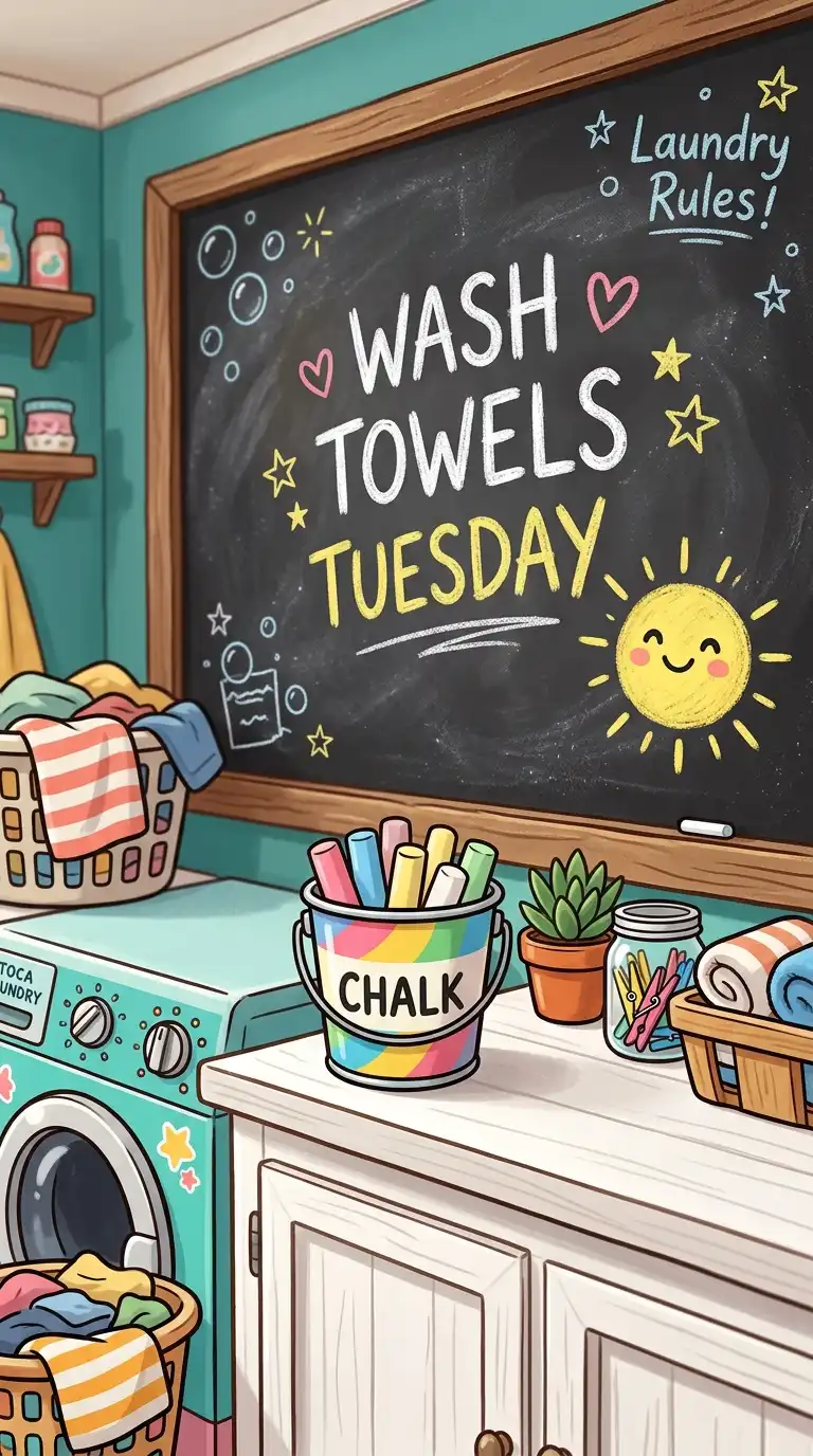Paint one wall or a section of the wall with chalkboard paint. Use it to write laundry reminders, draw doodles, or leave notes for family members. A chalkboard wall adds an interactive, playful element to the room. Keep a small bucket of chalk nearby.
