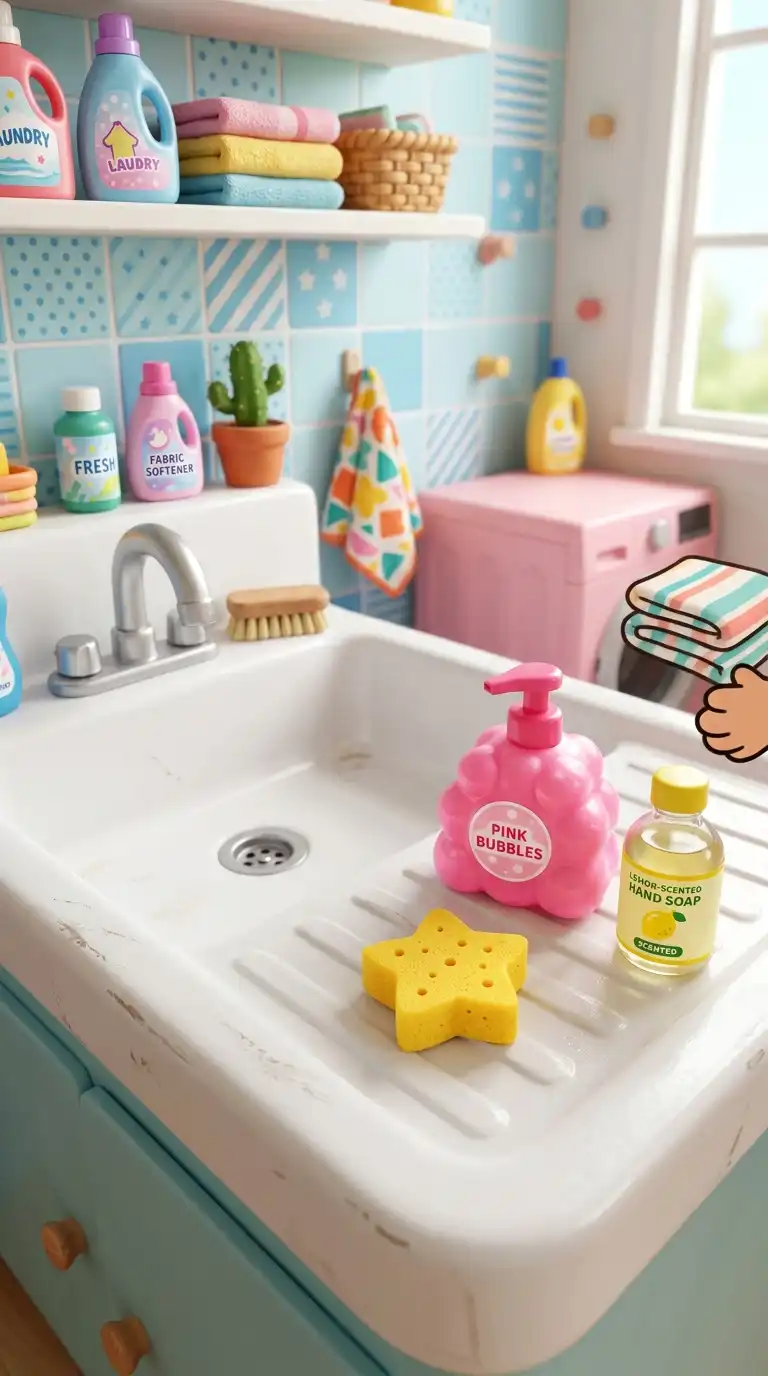 Add a utility sink to your Toca Boca laundry room, and decorate it with fun accessories. Use a colorful soap dispenser, a sponge in a fun shape, and a small bottle of hand soap. The sink becomes a charming, detailed feature of the room.