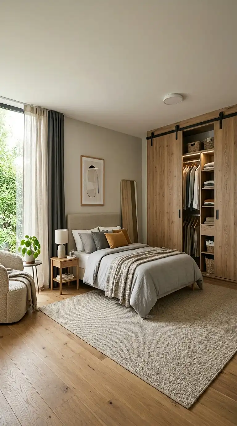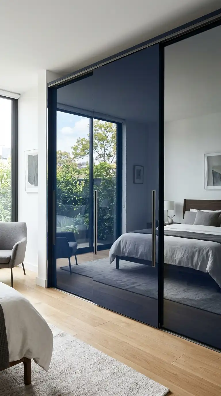 Sliding doors save floor space because they do not require swing clearance. They are ideal for small bedrooms, tight corners, and rooms with limited floor area. Sliding doors also offer a sleek, modern aesthetic and can span entire walls for maximum storage capacity.