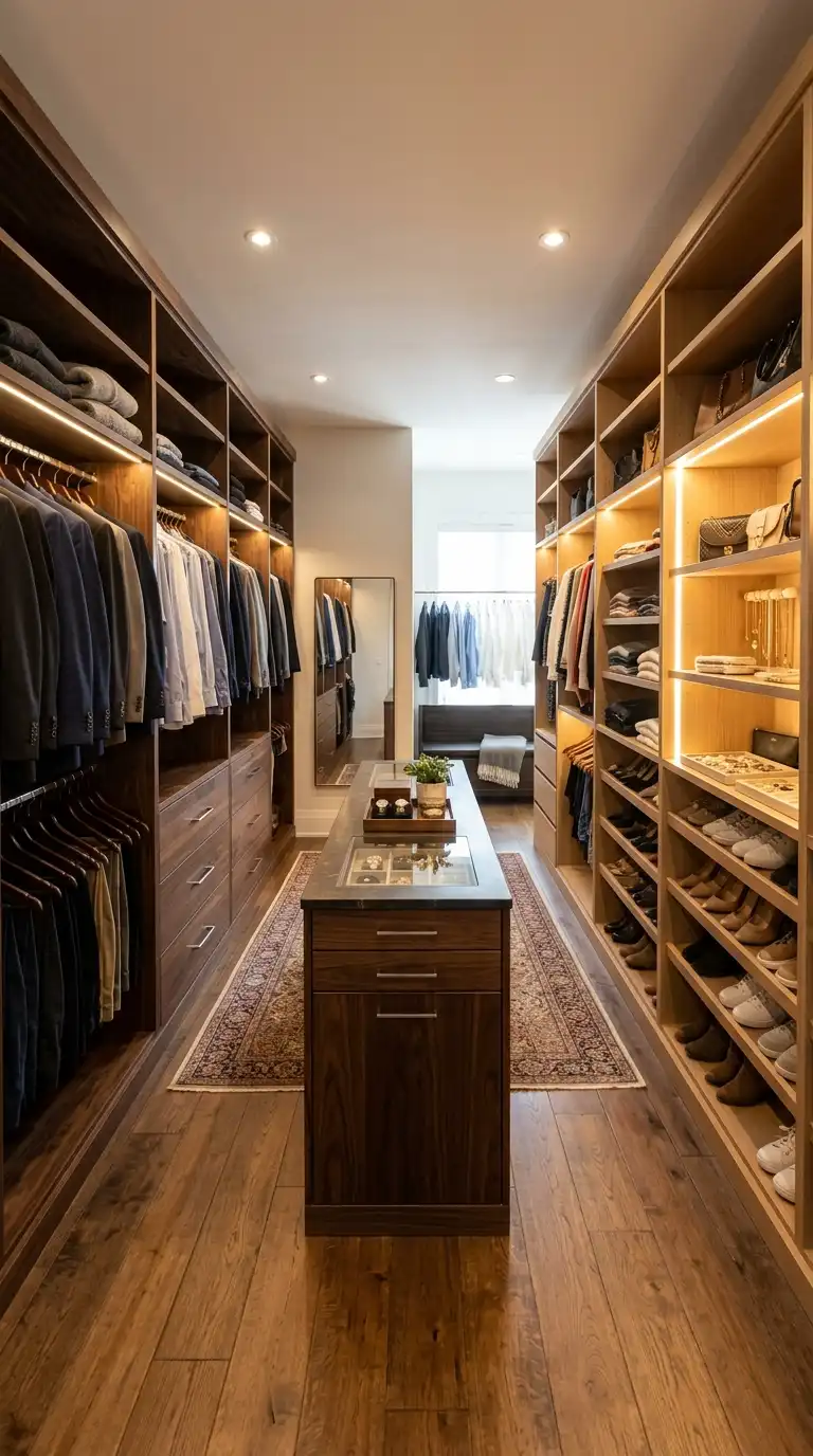 1. Boutique-Style Walking Wardrobe with Central Island