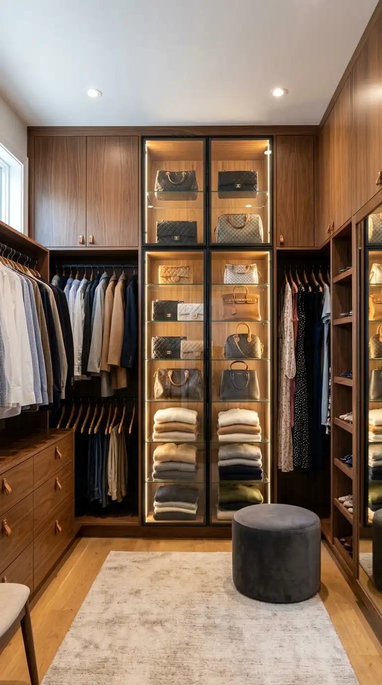 7. Walking Wardrobe with Glass-Front Cabinetry