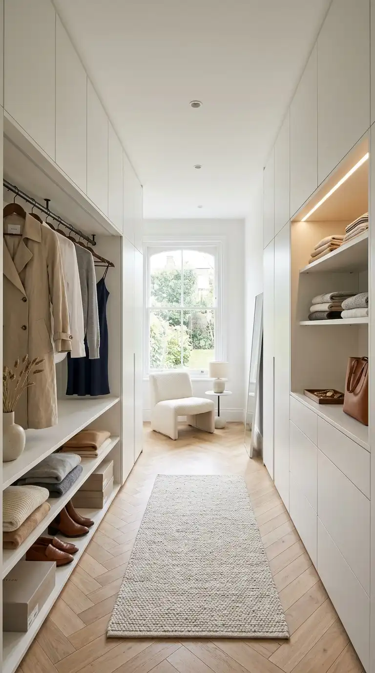 8. Minimalist Walking Wardrobe with Handleless Design