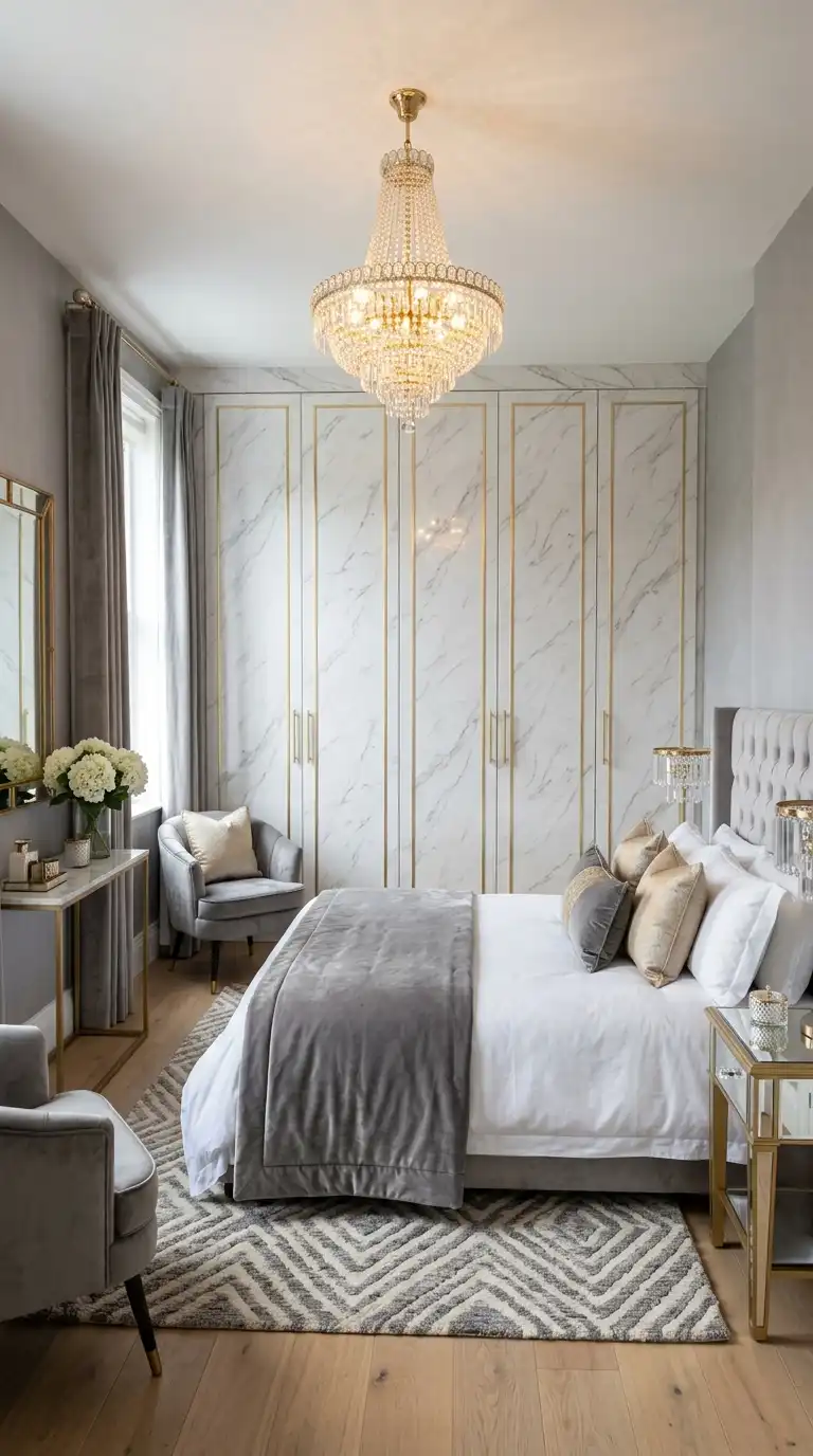 White marble effect laminate brings the elegance and luxury of natural stone into your bedroom at a fraction of the cost. The delicate gray veining against a crisp white background adds visual interest and a touch of glamour. This finish is perfect for contemporary, glam, and transitional interiors. Pair with gold or brass hardware to enhance the luxurious feel, or keep hardware minimal to let the marble pattern take center stage. Use marble laminate on wardrobe doors or as an accent panel within a larger laminate composition.