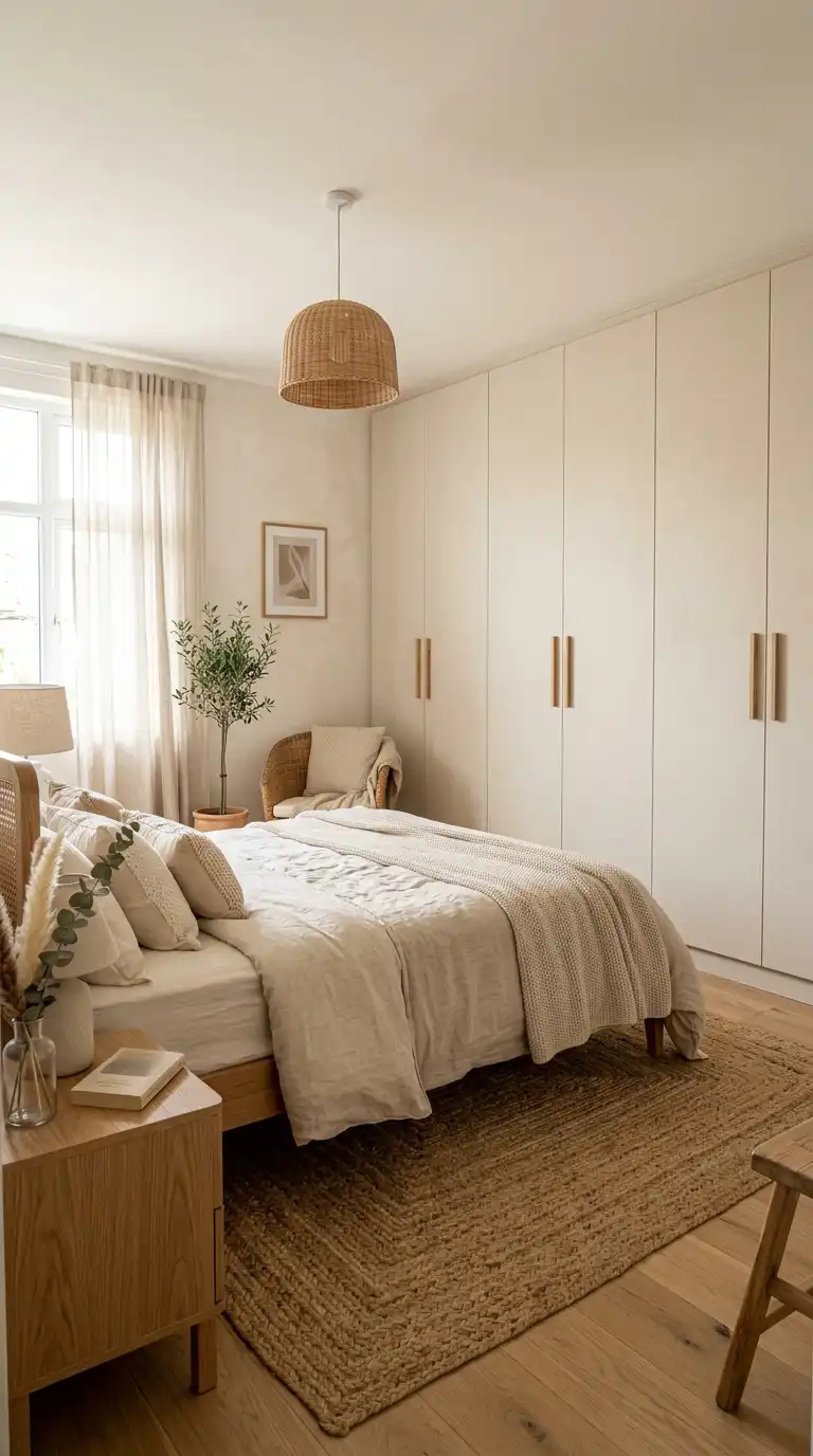Textured linen finish laminate mimics the soft, woven texture of natural fabric, adding tactile interest and understated elegance to wardrobe designs. The subtle, matte surface feels warm and organic, making it a perfect choice for bedrooms seeking a calm, serene aesthetic. This finish works beautifully in Scandinavian, coastal, and farmhouse interiors. Pair with natural wood accents, woven baskets, and soft textiles to enhance the organic feel. Linen finish laminate is also excellent at hiding fingerprints and minor imperfections.
